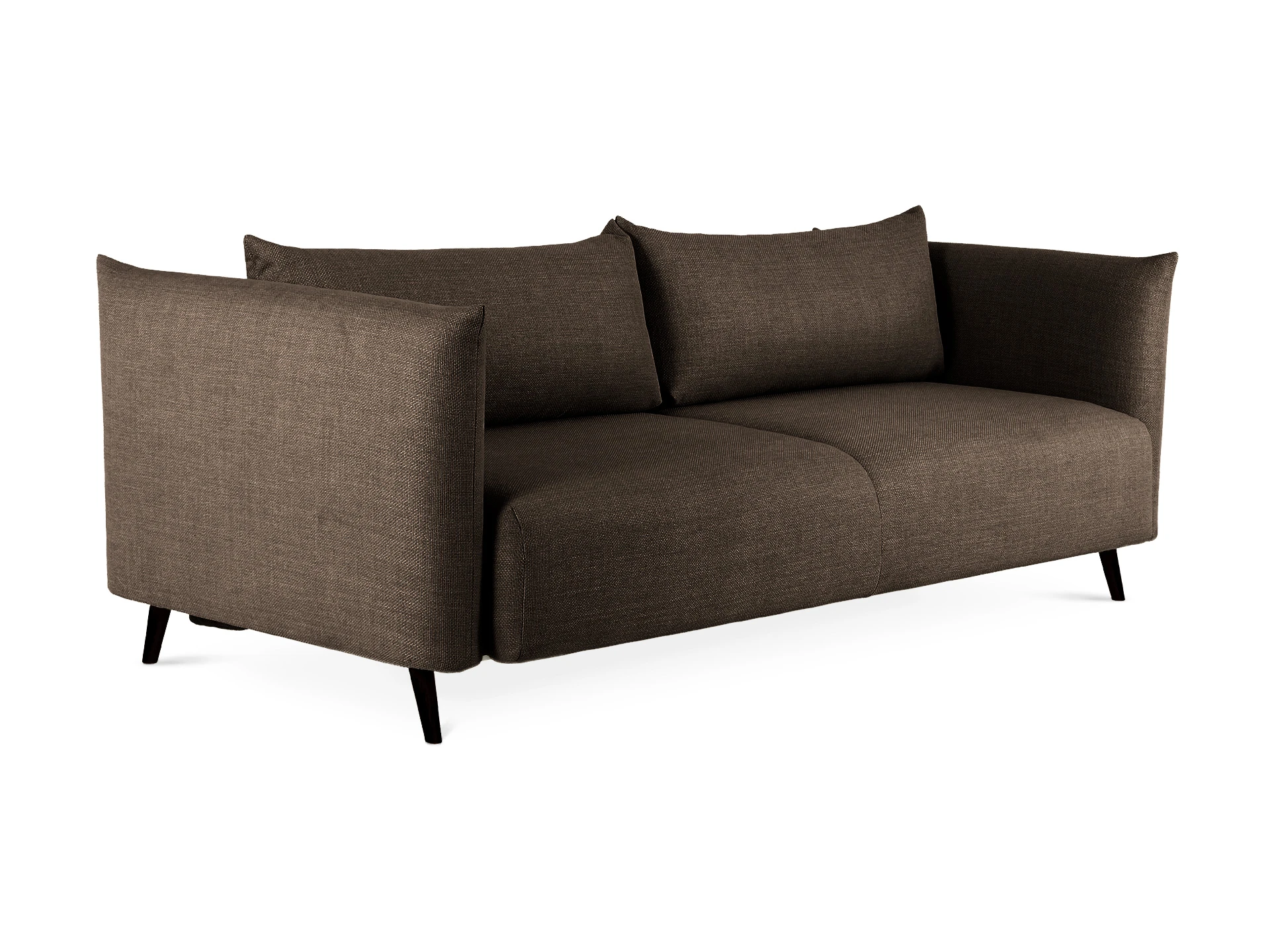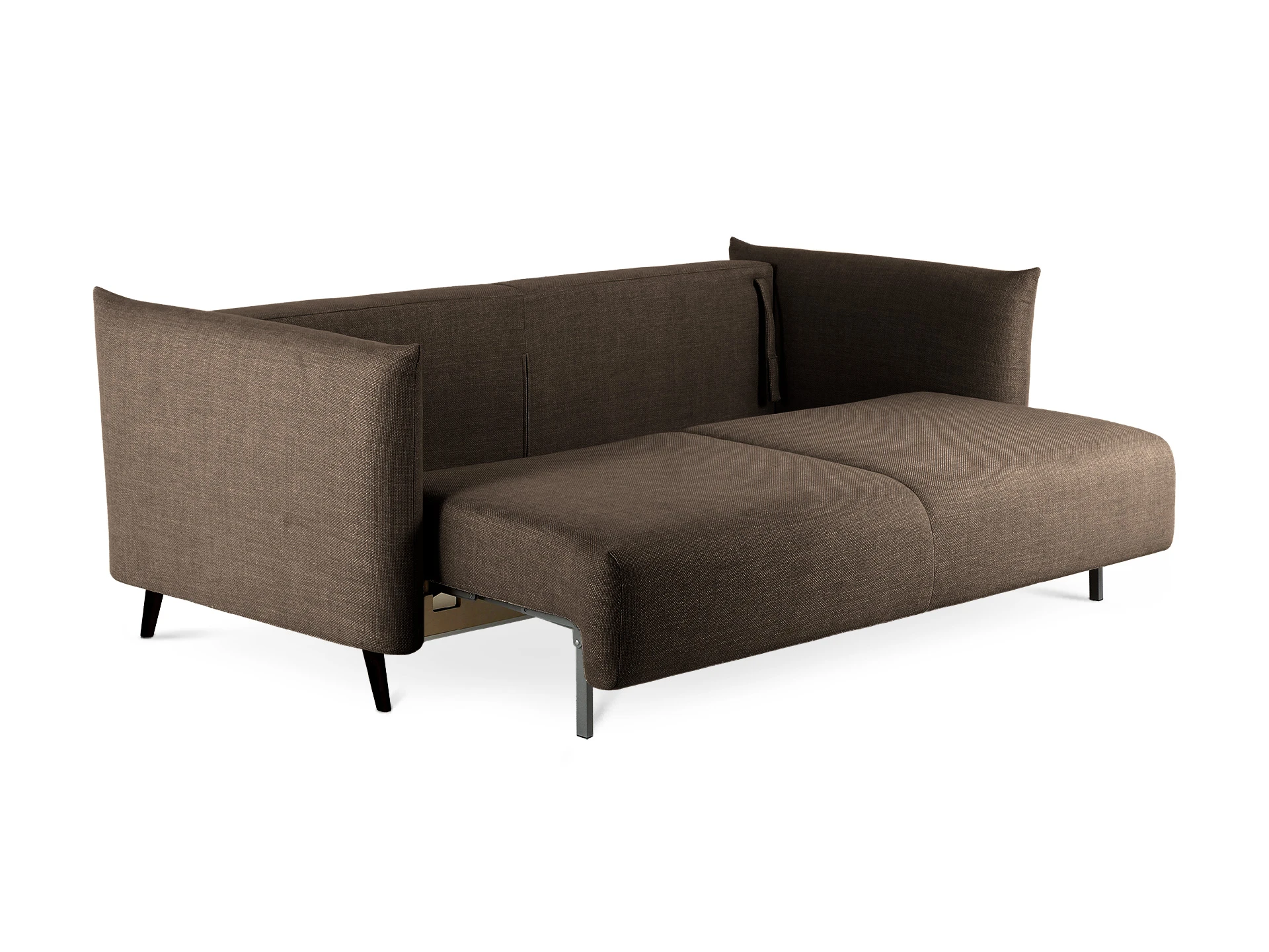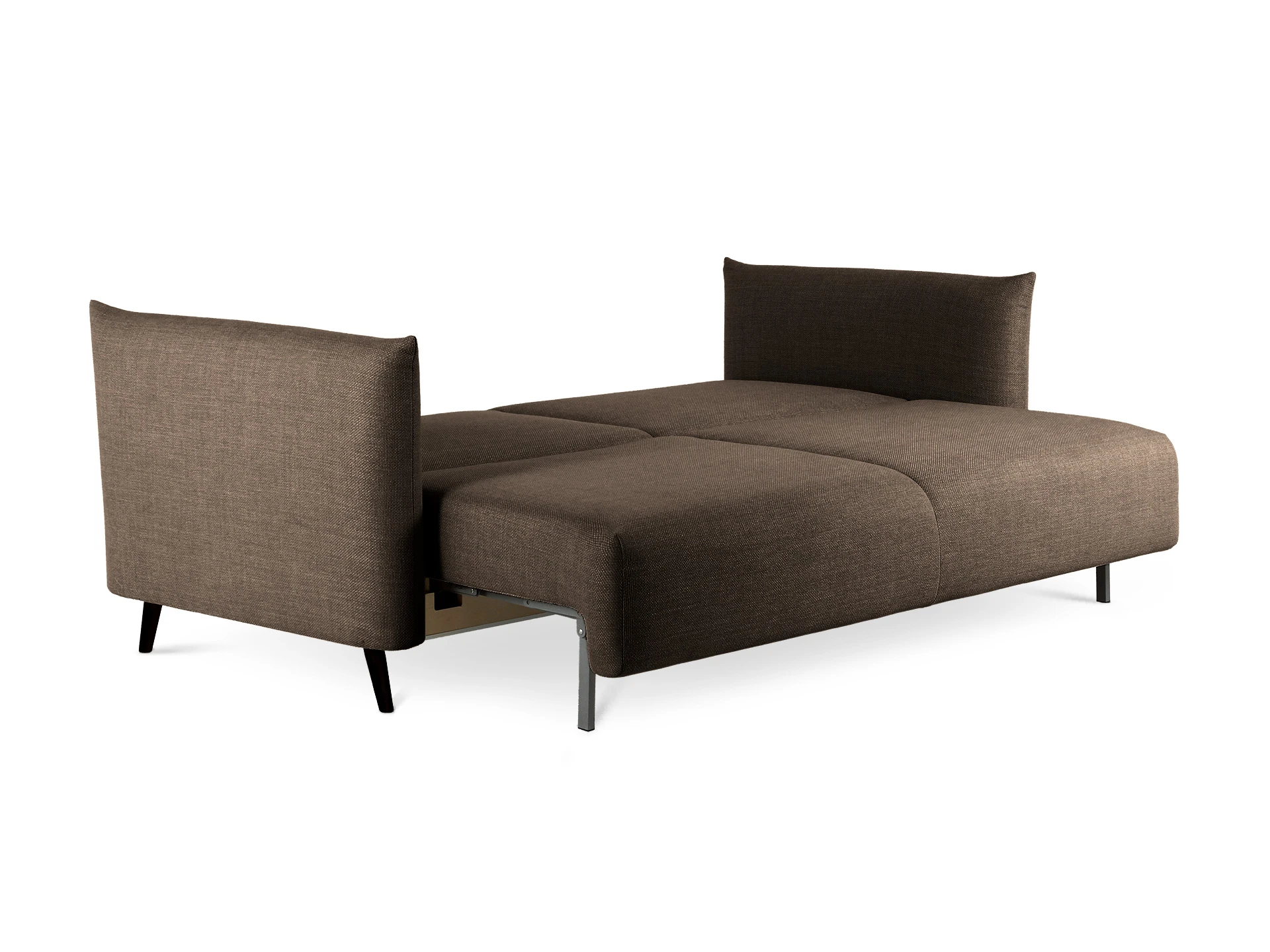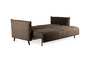 Диван Menfi превращается в кровать с помощью выдвижного механизма «еврокнижка» — прост и надежен в эксплуатации. Чтобы трансформировать диван нужно вытянуть секцию сиденья вперед, а на освободившееся место положить спинку дивана. Под сиденьем есть ниша, в которой можно хранить белье, текстиль, различные вещи.