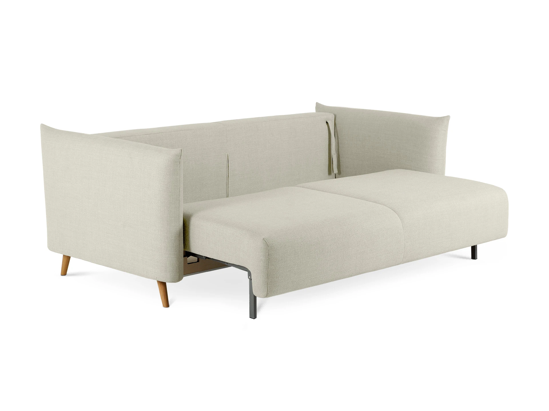 Диван Menfi превращается в кровать с помощью выдвижного механизма «еврокнижка» — прост и надежен в эксплуатации. Чтобы трансформировать диван нужно вытянуть секцию сиденья вперед, а на освободившееся место положить спинку дивана. Под сиденьем есть ниша, в которой можно хранить белье, текстиль, различные вещи.