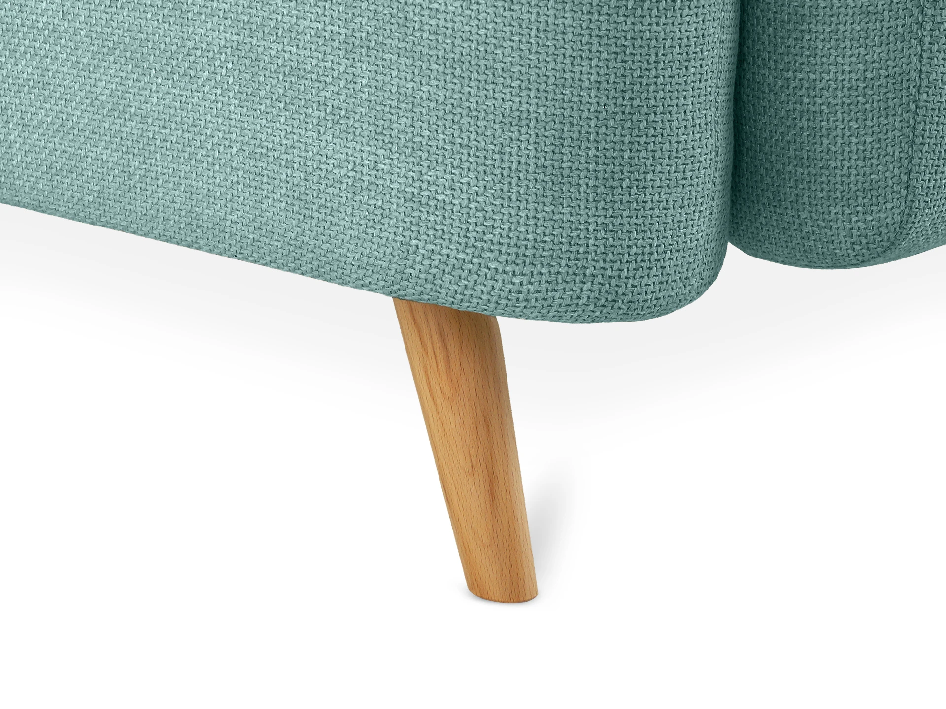 Вы можете персонализировать изделие, выбрав нужный цвет обивки из каталога материалов и ножки из 3 вариантов: из деревянных (светлые, черные) или металлические. А так же можно выбрать размер спинных подушек: большие (550*970) или малые (430*970).