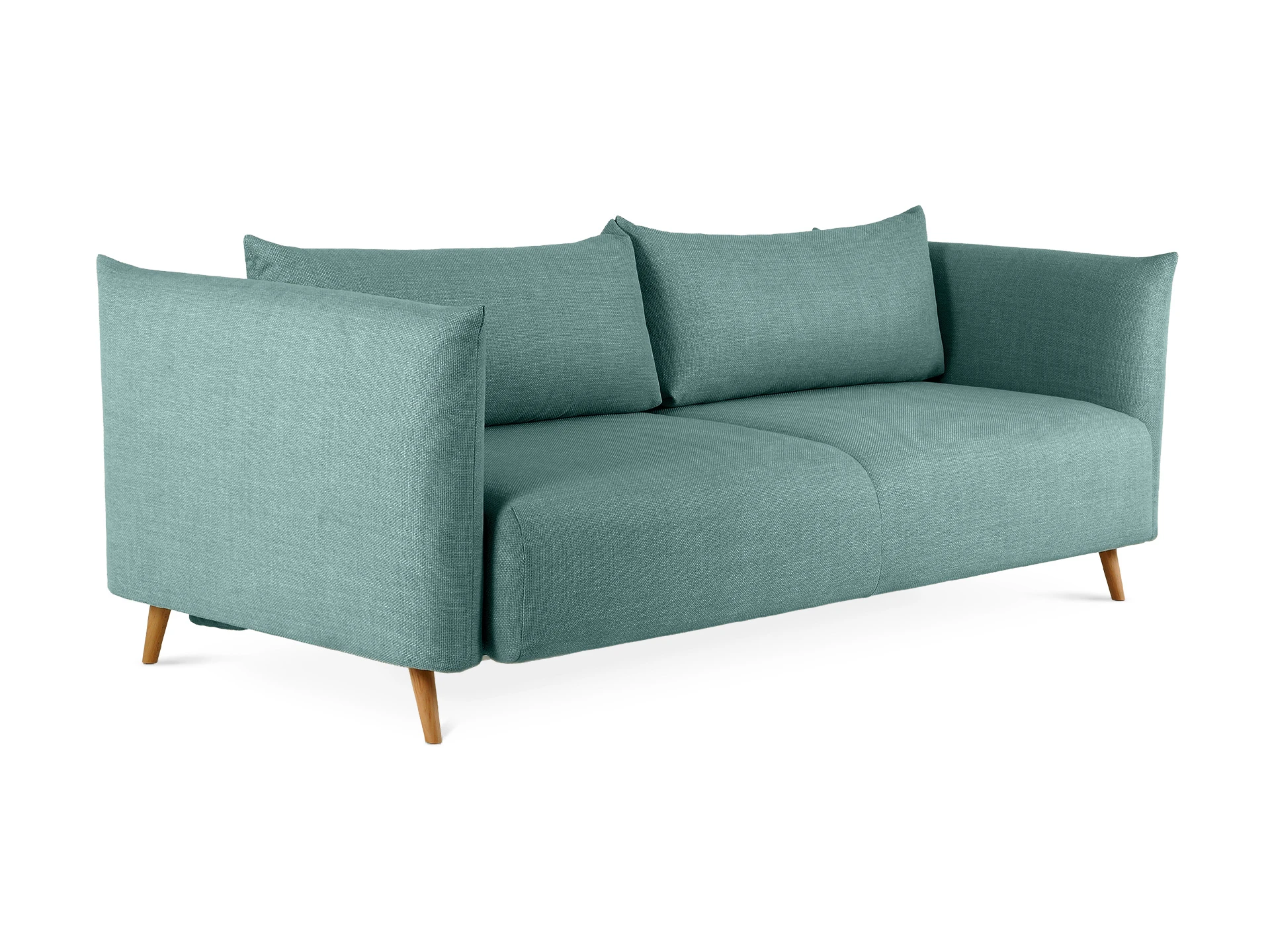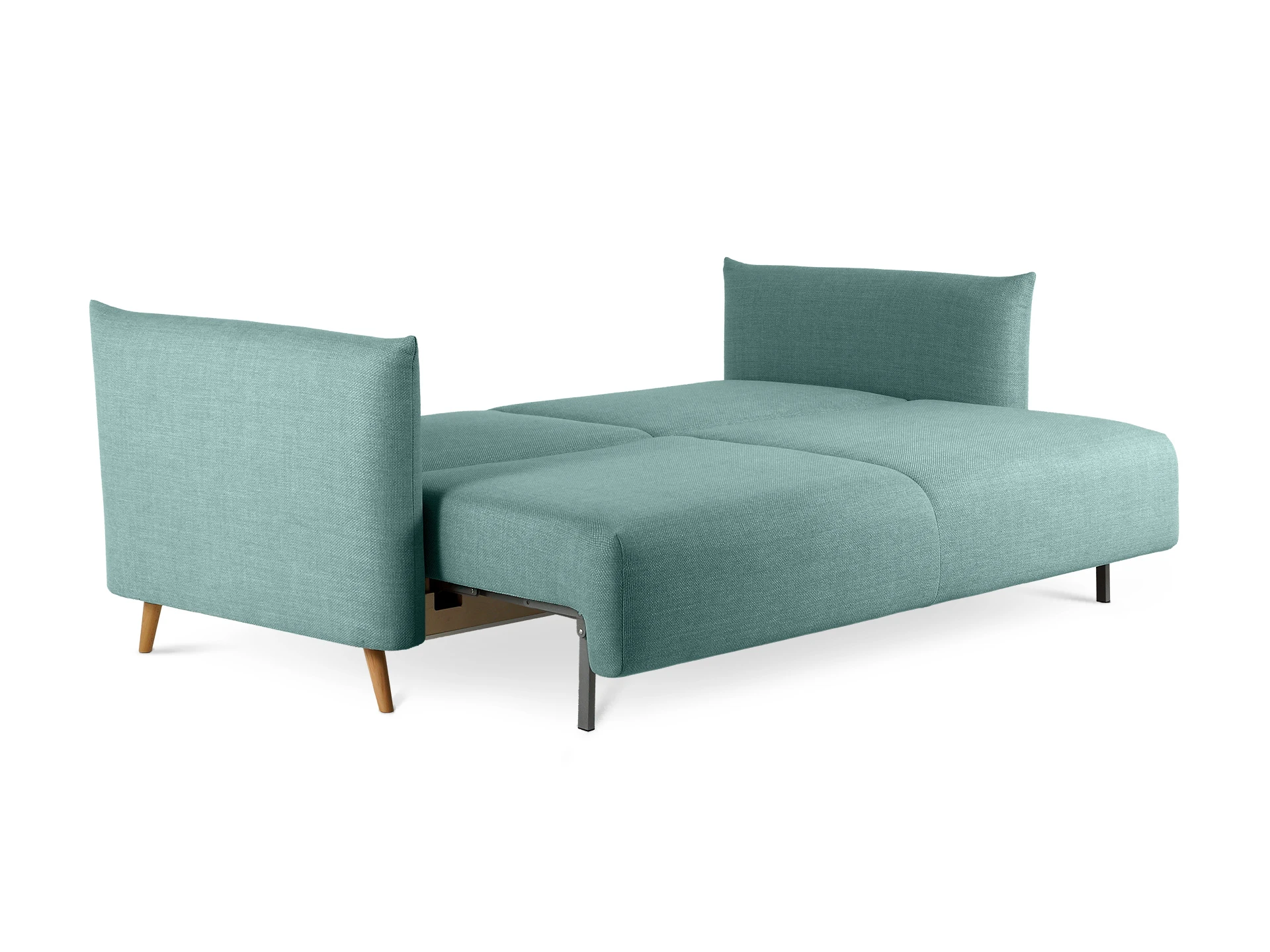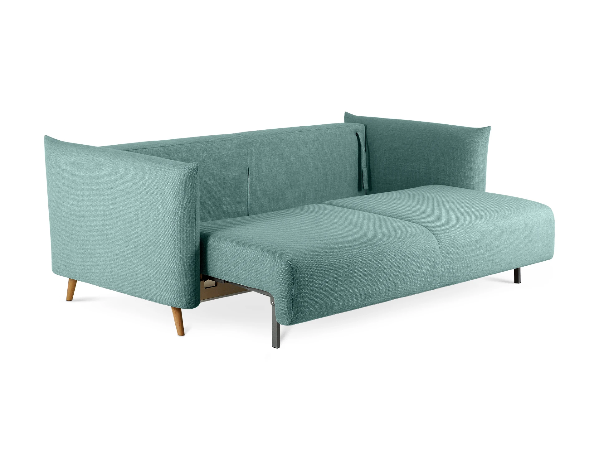 Диван Menfi превращается в кровать с помощью выдвижного механизма «еврокнижка» — прост и надежен в эксплуатации. Чтобы трансформировать диван нужно вытянуть секцию сиденья вперед, а на освободившееся место положить спинку дивана. Под сиденьем есть ниша, в которой можно хранить белье, текстиль, различные вещи.
