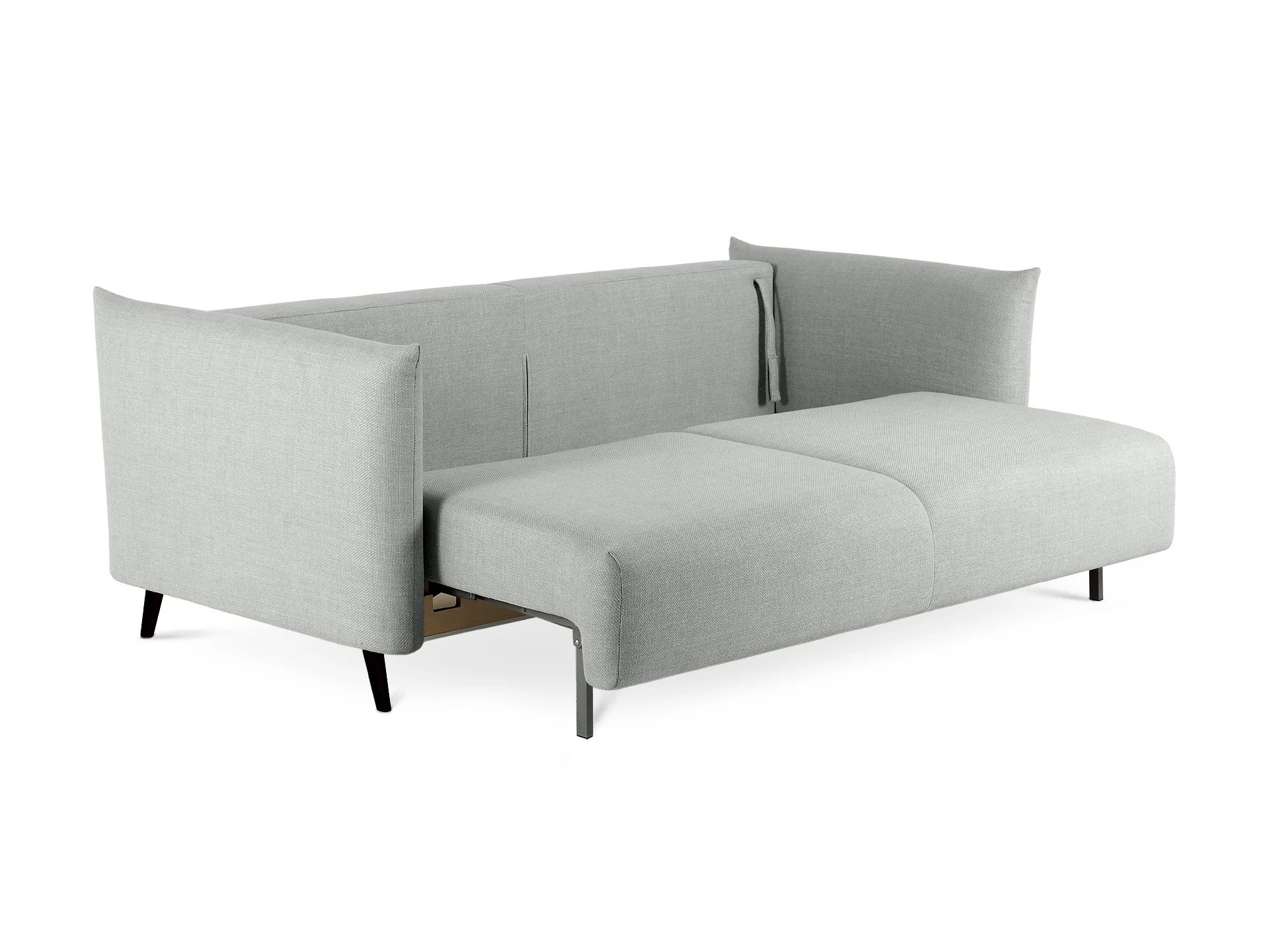 Диван Menfi превращается в кровать с помощью выдвижного механизма «еврокнижка» — прост и надежен в эксплуатации. Чтобы трансформировать диван нужно вытянуть секцию сиденья вперед, а на освободившееся место положить спинку дивана. Под сиденьем есть ниша, в которой можно хранить белье, текстиль, различные вещи.