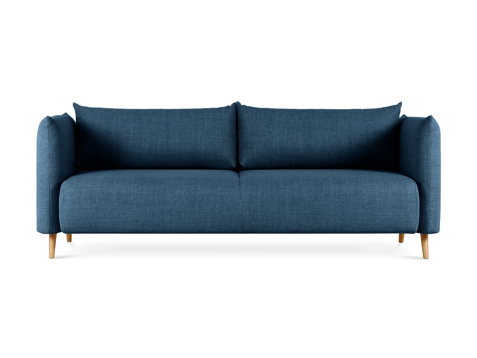 Вы можете персонализировать изделие, выбрав нужный цвет обивки из каталога материалов и ножки из 3 вариантов: из деревянных (светлые, черные) или металлические. А так же можно выбрать размер спинных подушек: большие (550*970) или малые (430*970).
