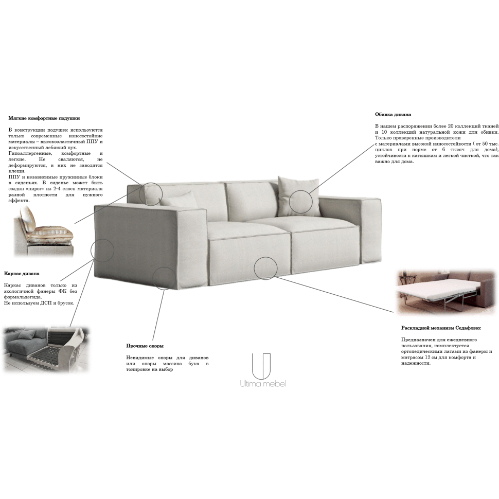 Диван Quadrum серая рогожка ( в ткани 1 категории )