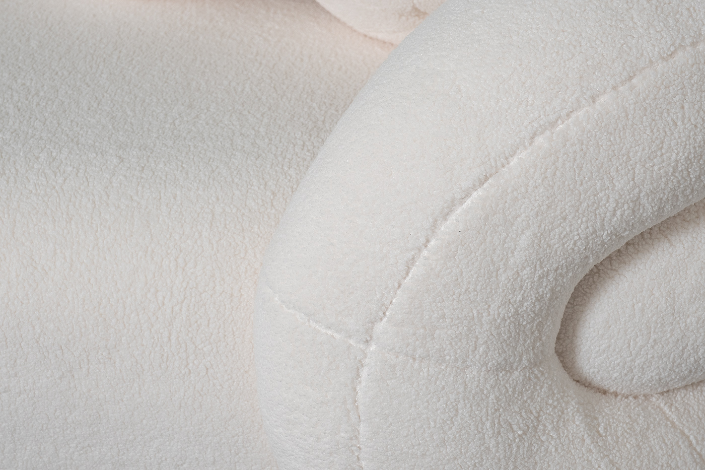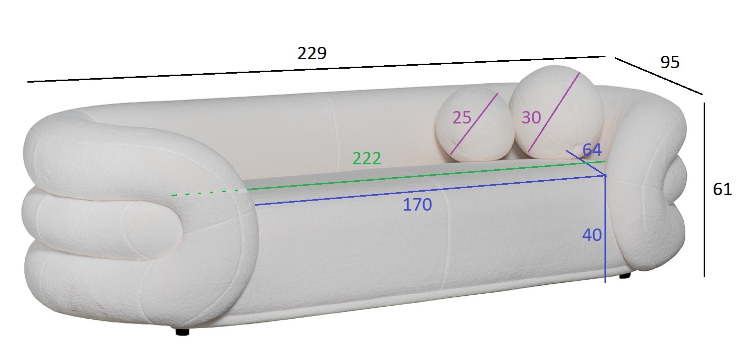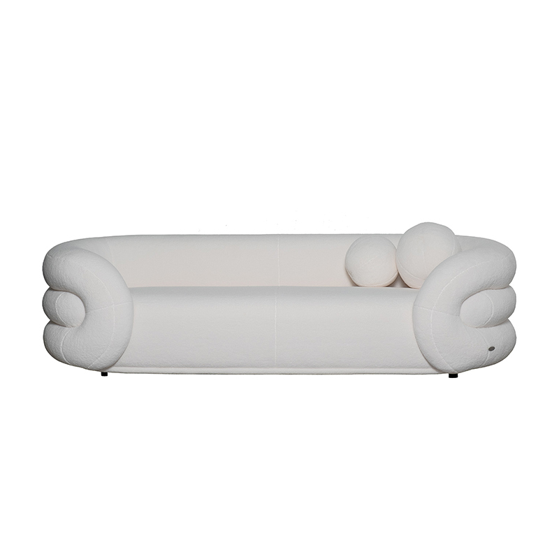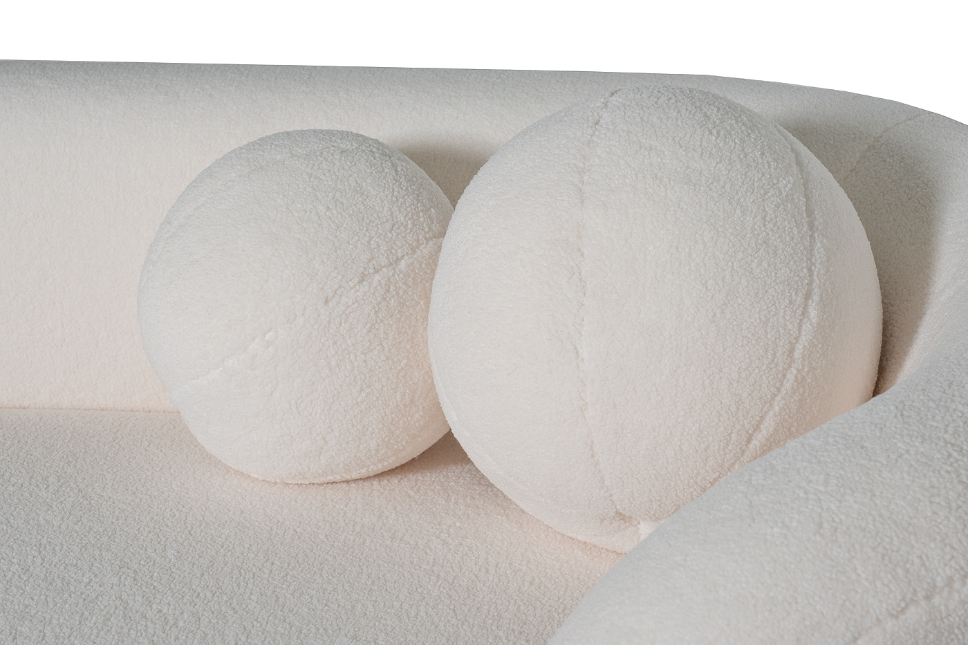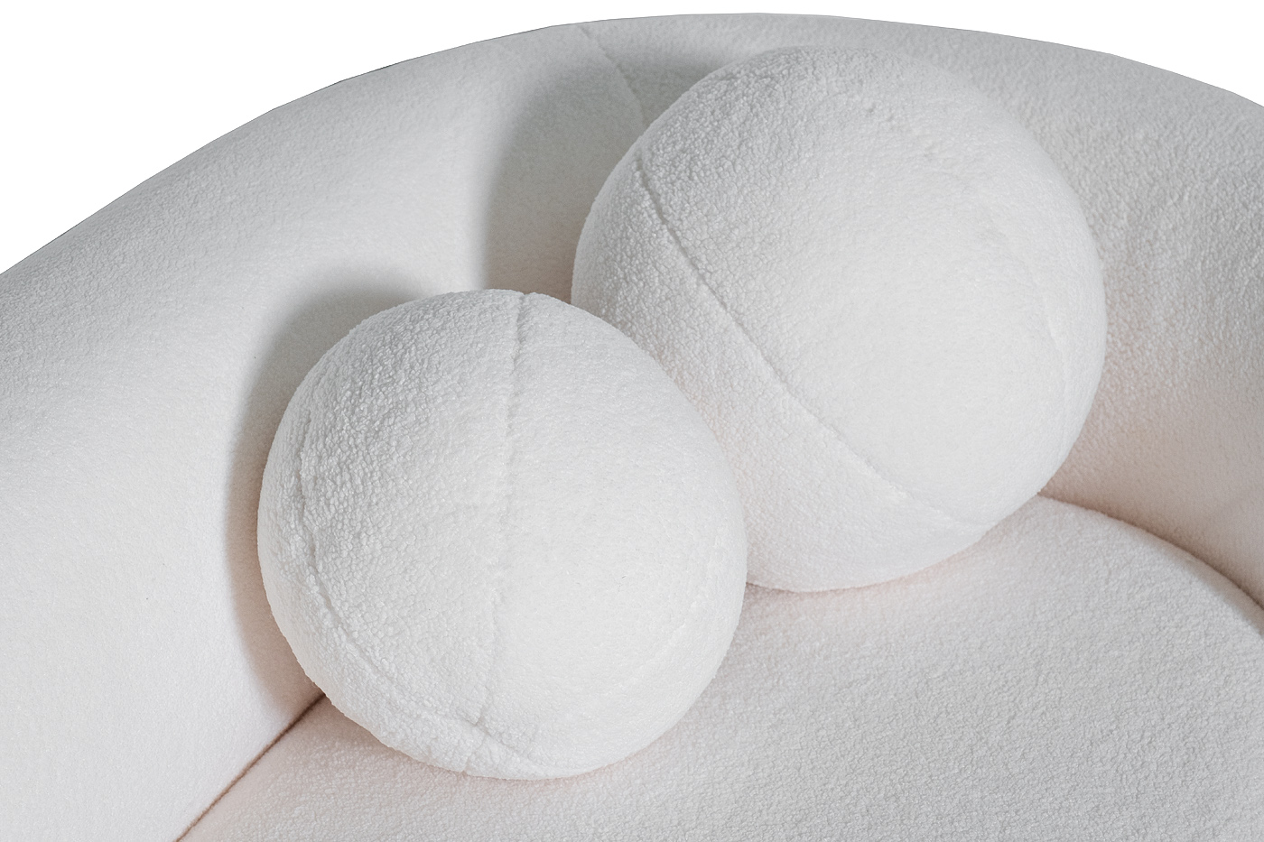 Запросить индивидуальное предложениеУютный белый диван футуристической формы выполнен из мягкой обивки, по фактуре напоминающей овечью шкуру. Оригинальные мягкие выпуклые объемы внешней части и шаровидные декоративные подушки несомненно будут притягивать взор и позволят в полной мере воспользоваться преимуществами этого дивана как дизайнерского объекта. В комплект входят две шарообразные подушки диаметром 25 и 30см. Габариты сиденья: ширина 170(222)см, глубина 64см, высота от пола 40см, высота спинки 21см.