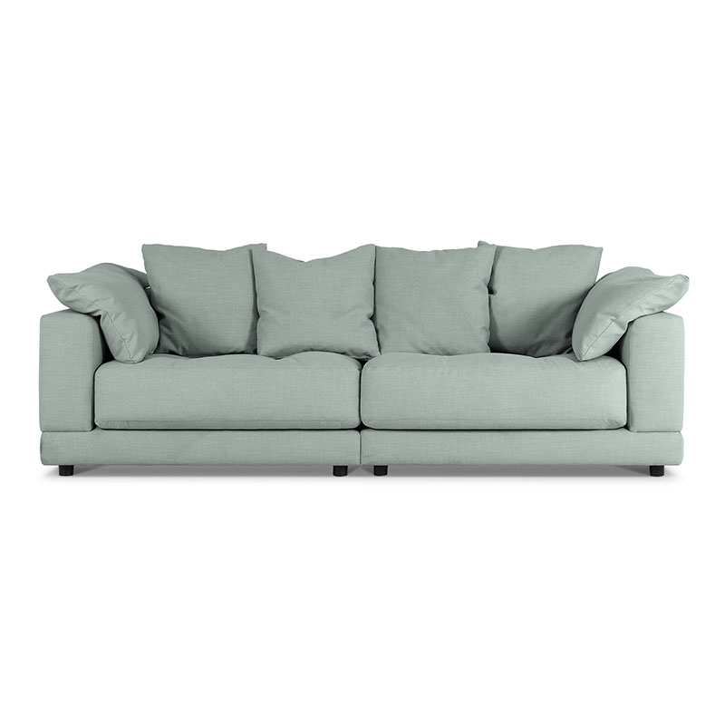 Диван дополнительно укомплектован декоративными подушками и подушками подлокотниками, наполнитель: пух-перо.