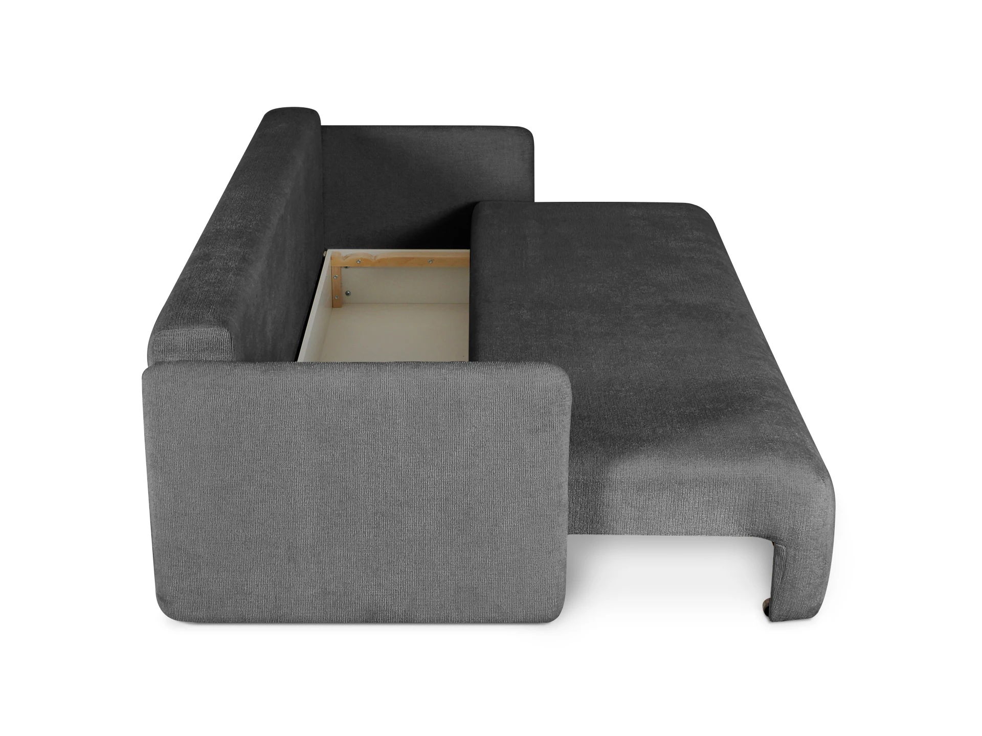 В диване используется механизм трансформации «еврокнижка». Принцип работы: сидение выдвигается вперед, а задняя спинка опускается в образовавшееся пространство. При раскладывании диван трансформируется в кровать с размером спального места 1990х1480 мм.