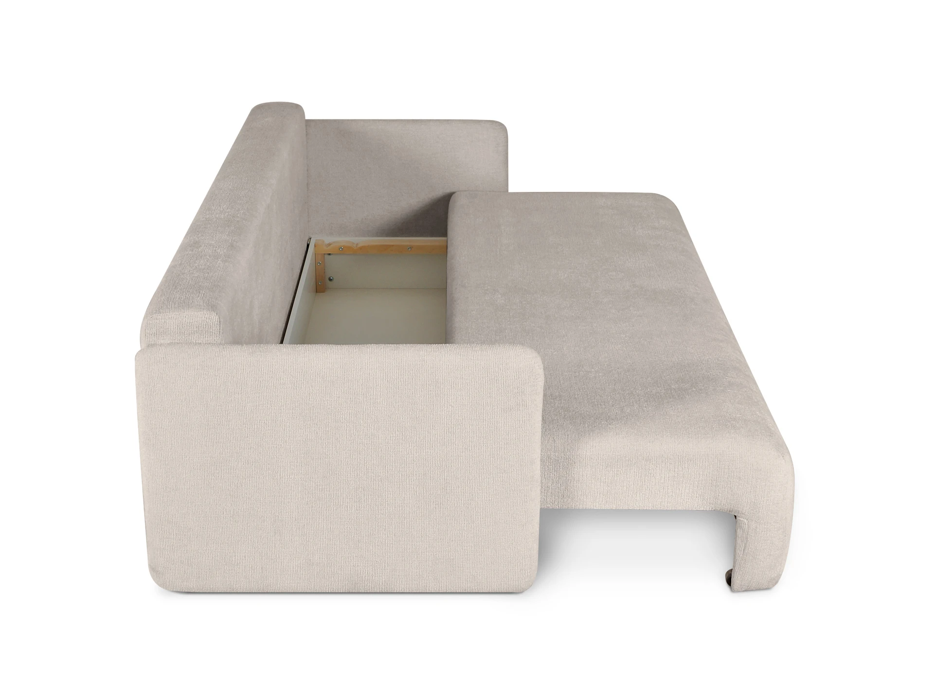 В диване используется механизм трансформации «еврокнижка». Принцип работы: сидение выдвигается вперед, а задняя спинка опускается в образовавшееся пространство. При раскладывании диван трансформируется в кровать с размером спального места 1990х1480 мм.