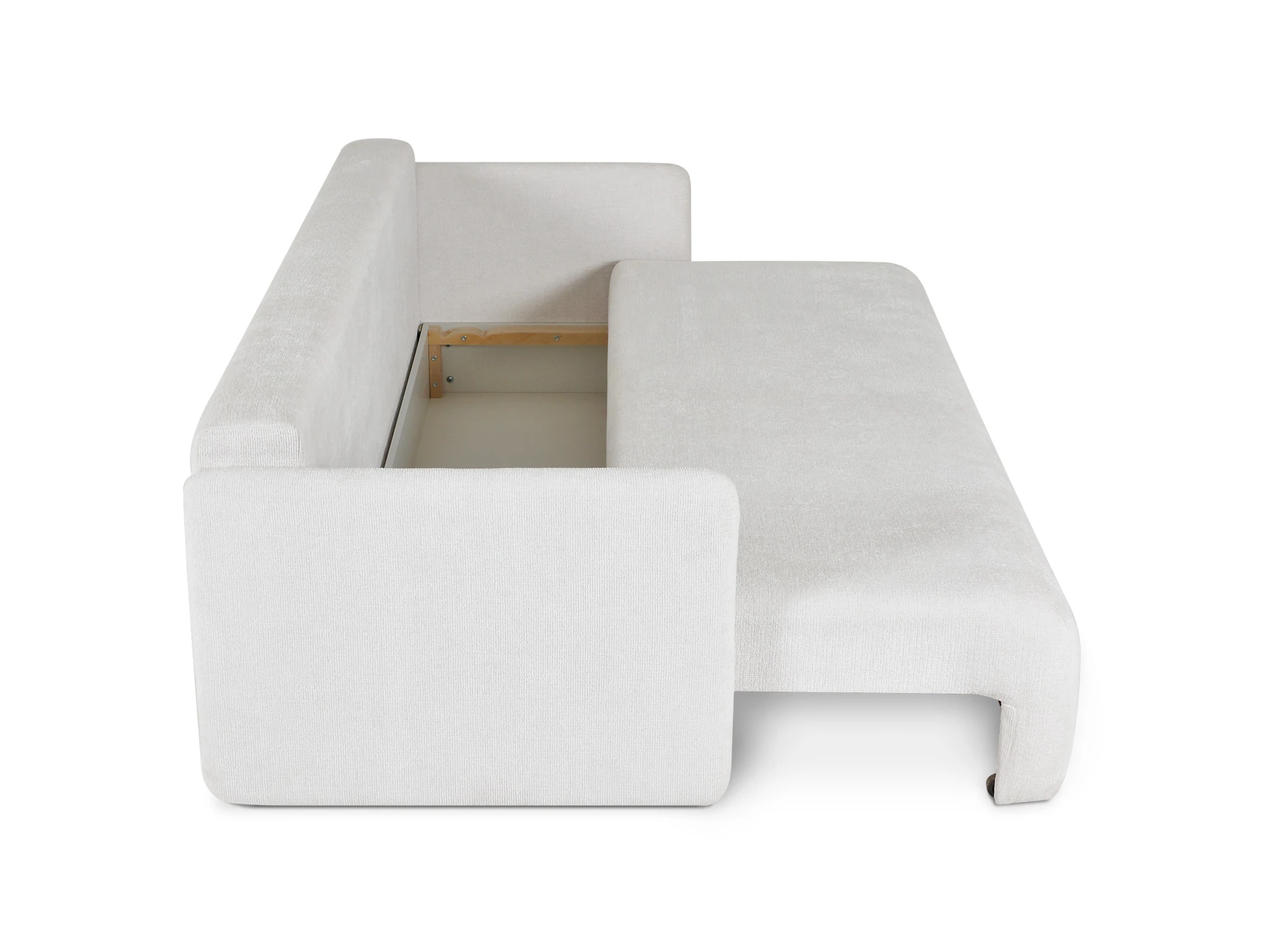 В диване используется механизм трансформации «еврокнижка». Принцип работы: сидение выдвигается вперед, а задняя спинка опускается в образовавшееся пространство. При раскладывании диван трансформируется в кровать с размером спального места 1990х1480 мм.