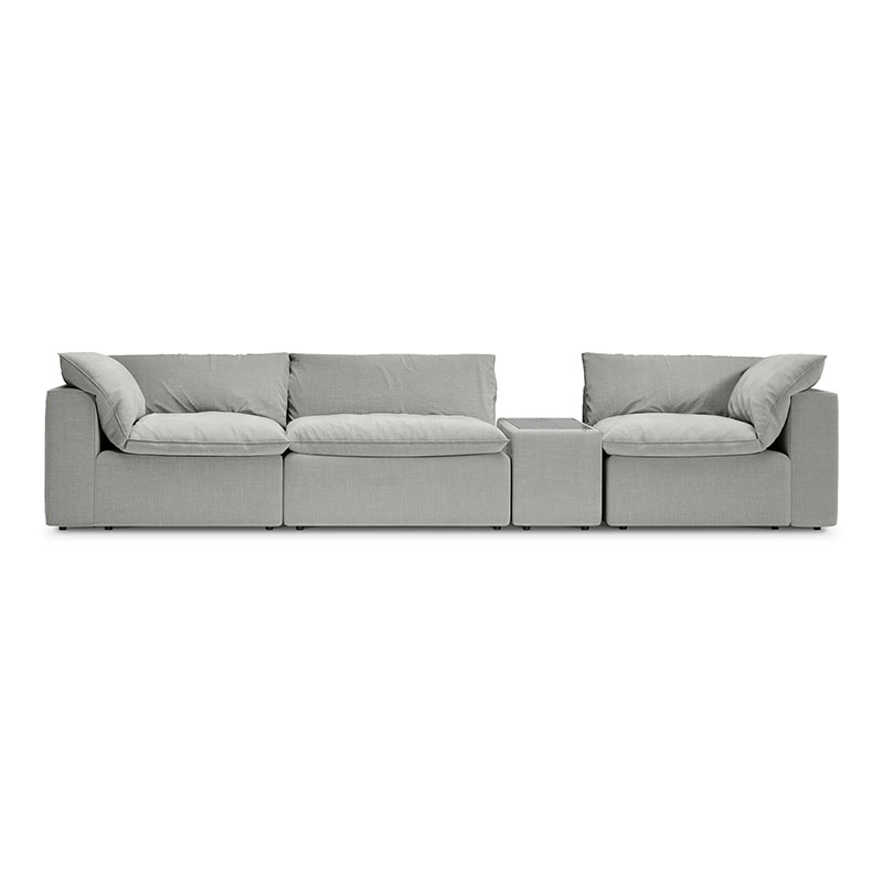 Лицевой чехол каркаса изделия - несъемный. Лицевой чехол покровных подушек- съемный, на молнии.