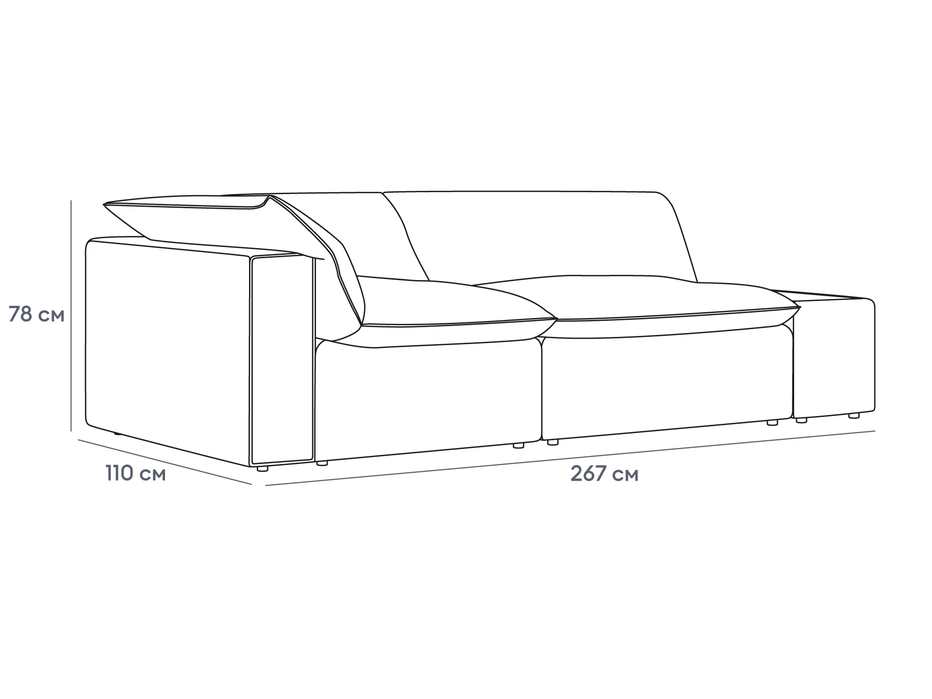 Лицевой чехол каркаса изделия - несъемный. Лицевой чехол покровных подушек- съемный, на молнии.