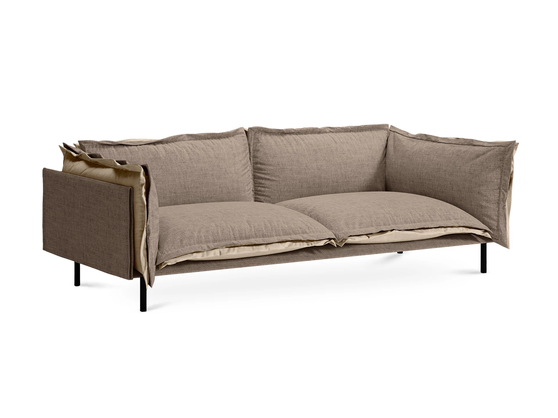 Металлические опоры дивана обеспечивают устойчивость, они окрашены черной матовой эмалью. А также снабжены пластиковыми подпятниками и сохраняют напольное покрытие от царапин.