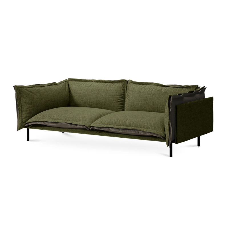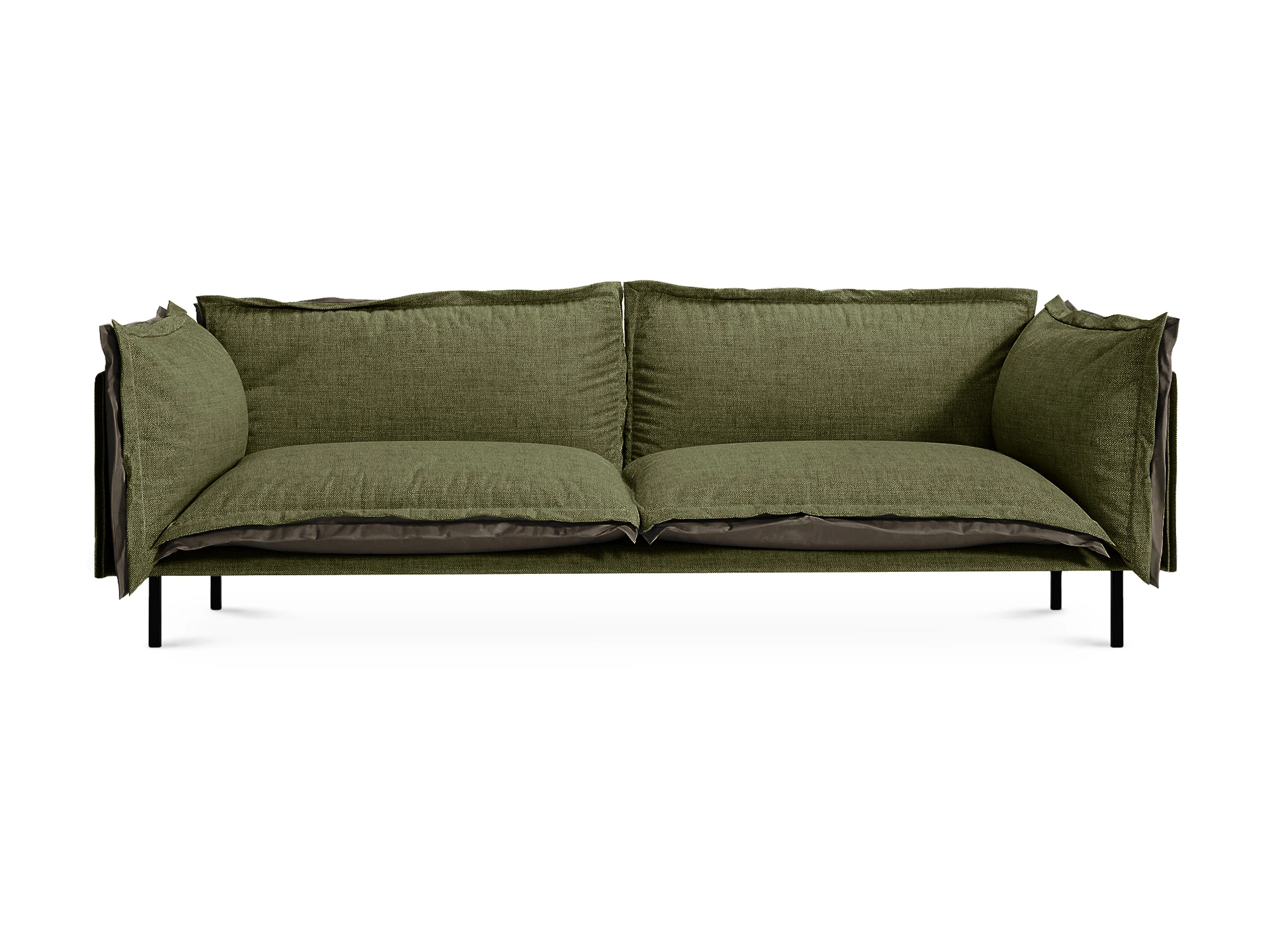 Металлические опоры дивана обеспечивают устойчивость, они окрашены черной матовой эмалью. А также снабжены пластиковыми подпятниками и сохраняют напольное покрытие от царапин.
