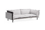Металлические опоры дивана обеспечивают устойчивость, они окрашены черной матовой эмалью. А также снабжены пластиковыми подпятниками и сохраняют напольное покрытие от царапин.