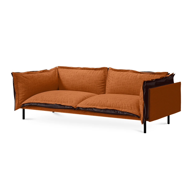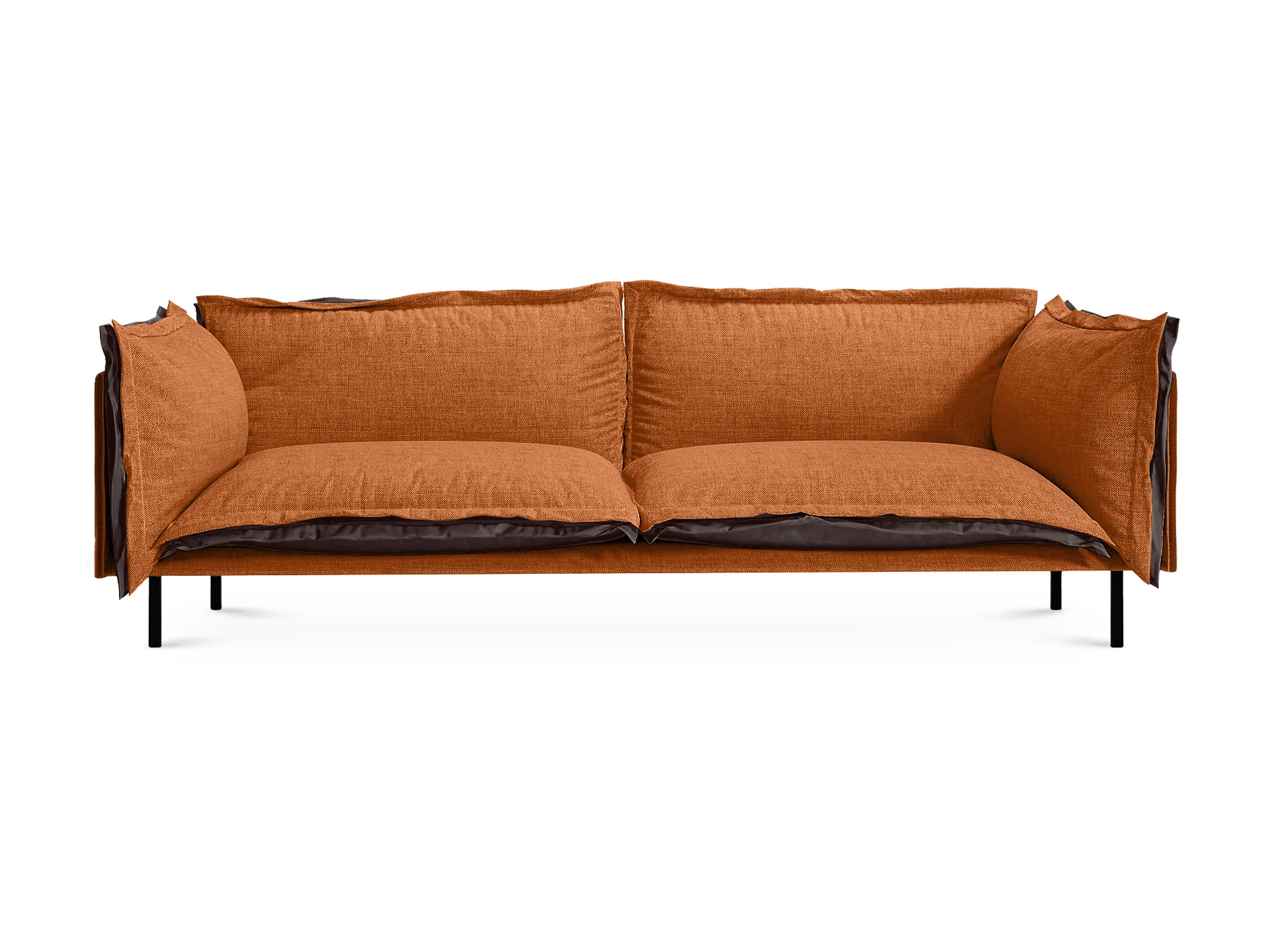 Металлические опоры дивана обеспечивают устойчивость, они окрашены черной матовой эмалью. А также снабжены пластиковыми подпятниками и сохраняют напольное покрытие от царапин.