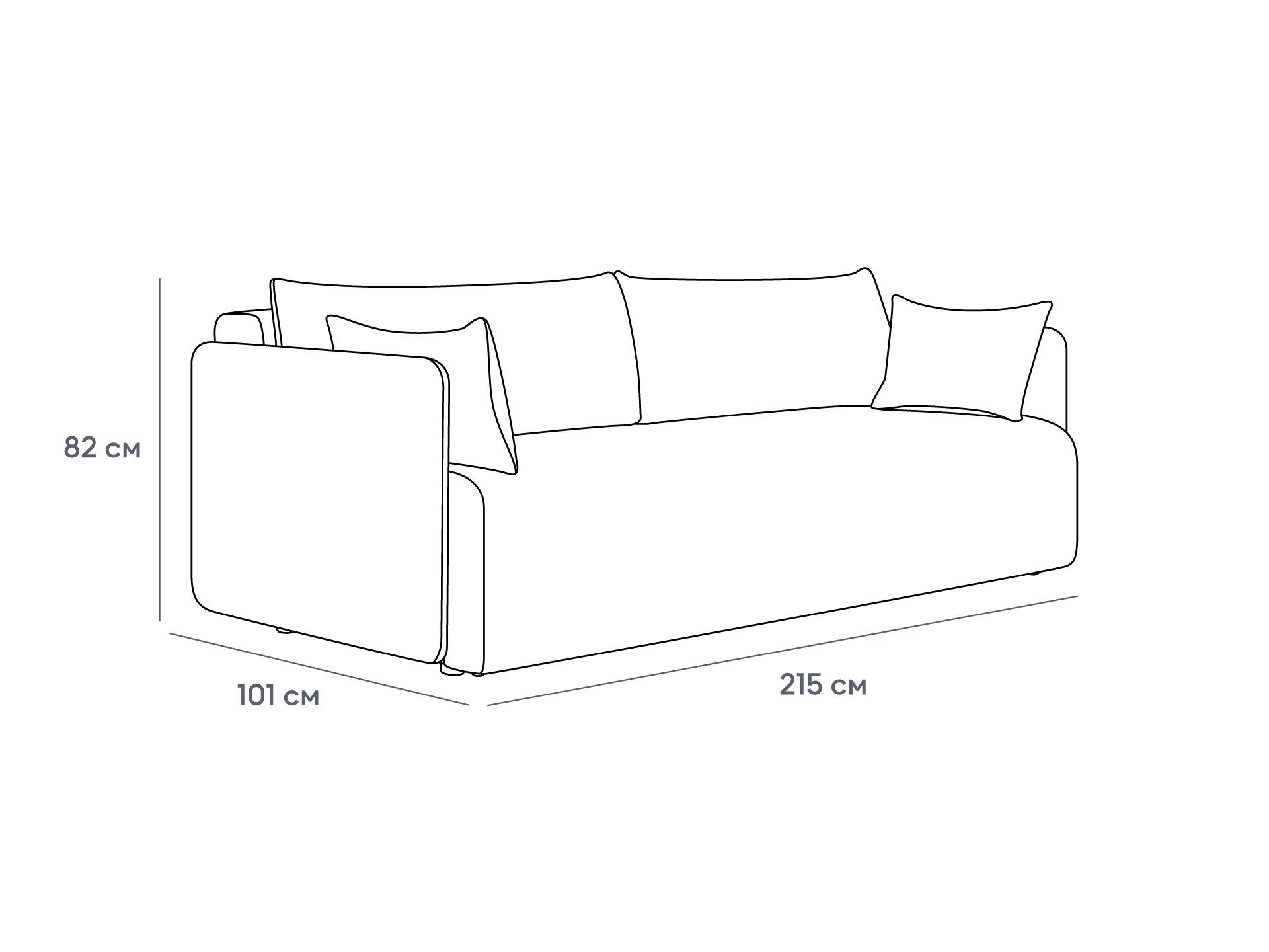 Силуэт модели играет элегантностью и простотой. Плавные линии, закругленные элементы, фактурная обивка, естественные оттенки поддержат высокий уровень комфорта и атмосферу дружелюбного притяжения в вашем пространстве. Диван обрадует просторным и удобным сиденьем, мягкими подушками спинки, подлокотников. Которые расположены практически на одном уровне со спинкой — такая геометрия создаёт ощущение уединённости, защиты.