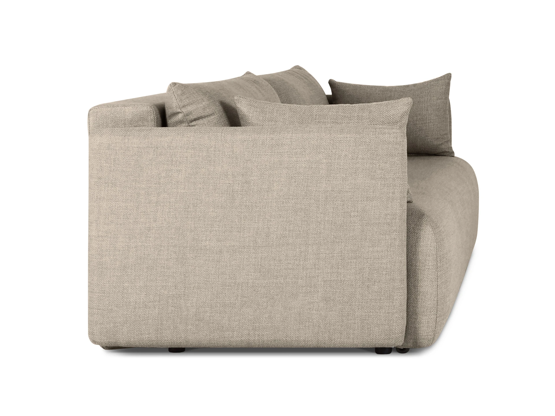 Силуэт модели играет элегантностью и простотой. Плавные линии, закругленные элементы, фактурная обивка, естественные оттенки поддержат высокий уровень комфорта и атмосферу дружелюбного притяжения в вашем пространстве. Диван обрадует просторным и удобным сиденьем, мягкими подушками спинки, подлокотников. Которые расположены практически на одном уровне со спинкой — такая геометрия создаёт ощущение уединённости, защиты.