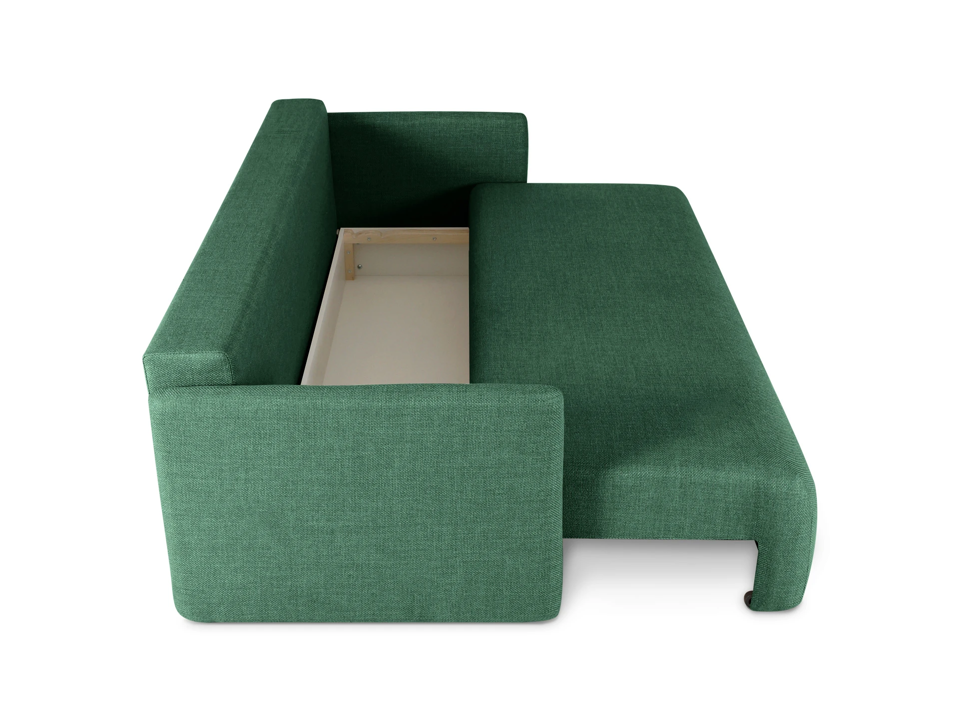 В диване используется механизм трансформации «еврокнижка». Принцип работы: сидение выдвигается вперед, а задняя спинка опускается в образовавшееся пространство. При раскладывании диван трансформируется в кровать с размером спального места 1990х1480 мм.