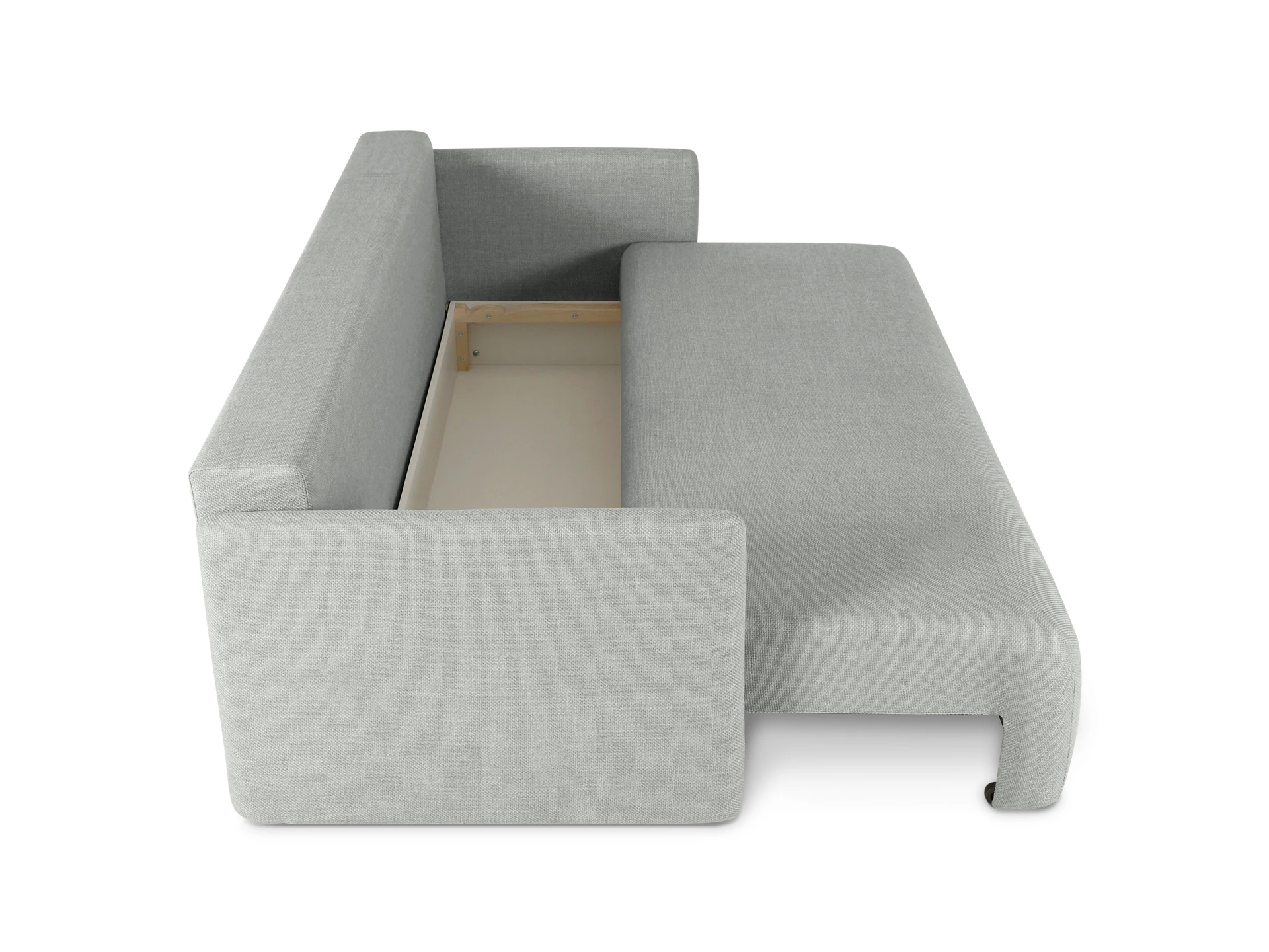 В диване используется механизм трансформации «еврокнижка». Принцип работы: сидение выдвигается вперед, а задняя спинка опускается в образовавшееся пространство. При раскладывании диван трансформируется в кровать с размером спального места 1990х1480 мм.