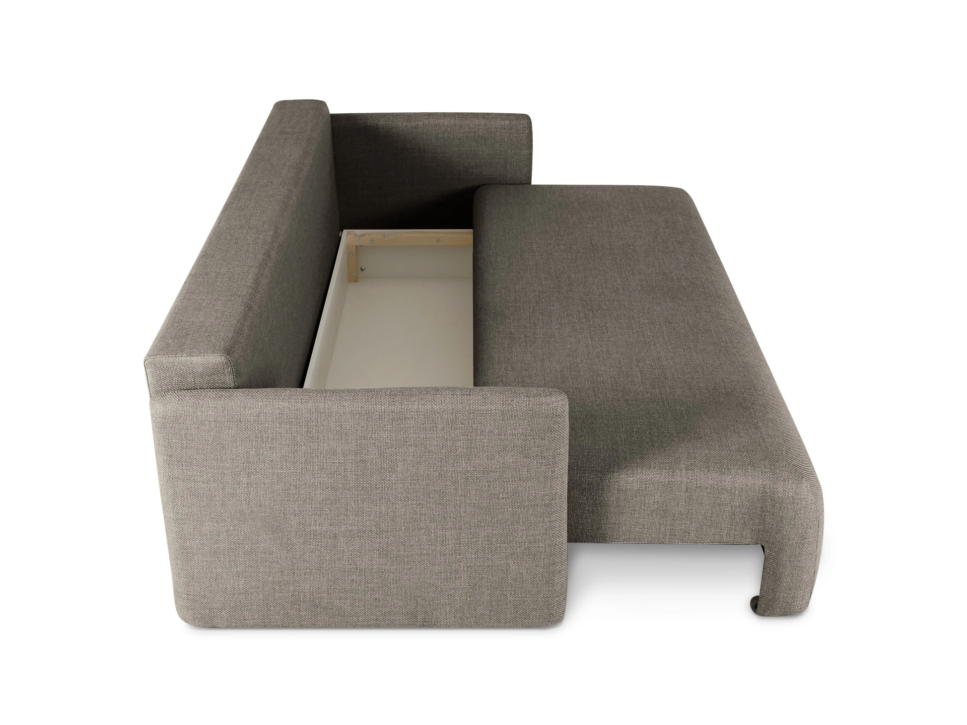 В диване используется механизм трансформации «еврокнижка». Принцип работы: сидение выдвигается вперед, а задняя спинка опускается в образовавшееся пространство. При раскладывании диван трансформируется в кровать с размером спального места 1990х1480 мм.