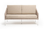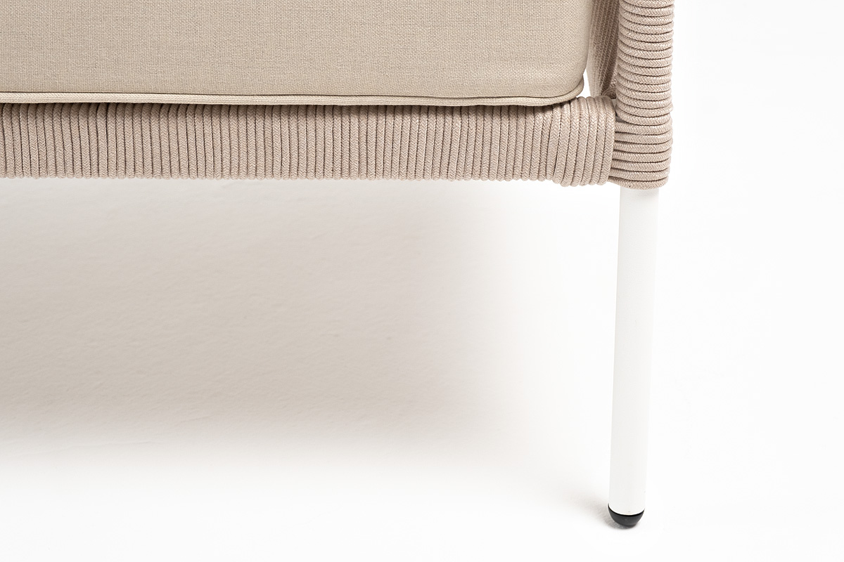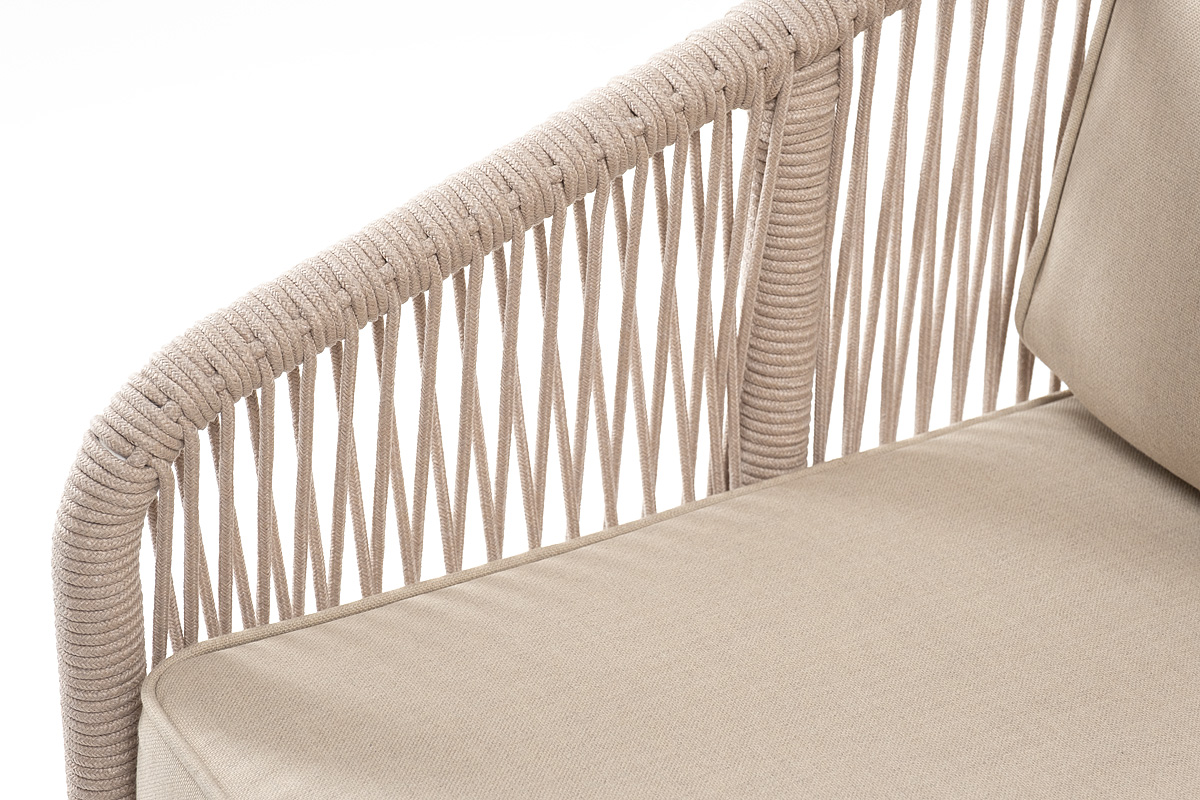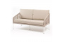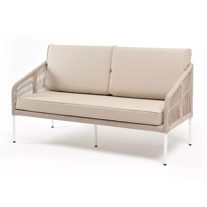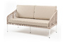 "Канны" диван 2-местный плетеный из роупа, каркас алюминий белый муар, роуп бежевый круглый, ткань бежевая 15052