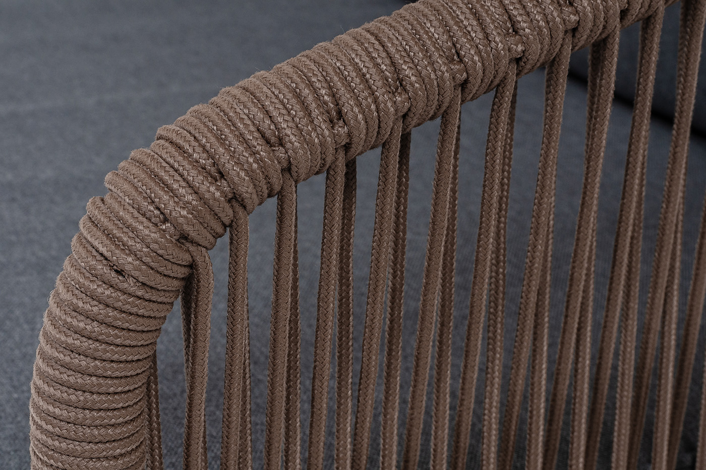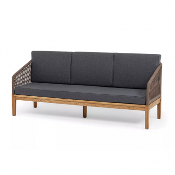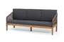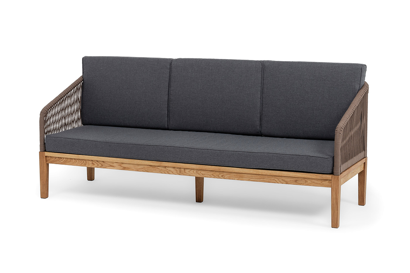 "Канны" диван 3-местный плетеный из роупа, основание дуб, роуп коричневый круглый, ткань темно-серая 027
