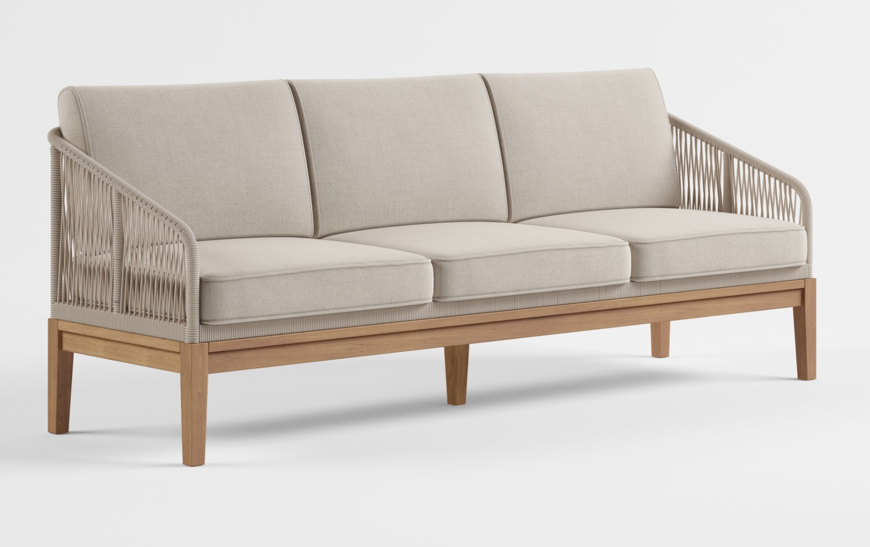 "Канны" диван 3-местный плетеный из роупа, основание дуб, роуп коричневый круглый, ткань темно-серая 027