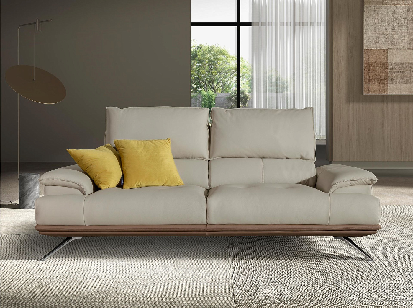 Диван 3-местный из серо-коричневой кожи, модель 6247