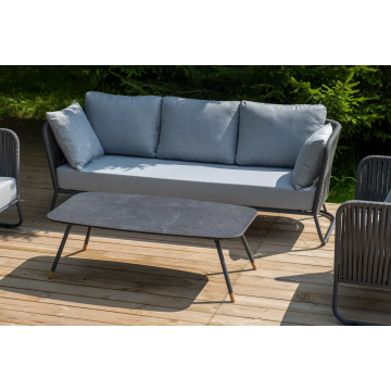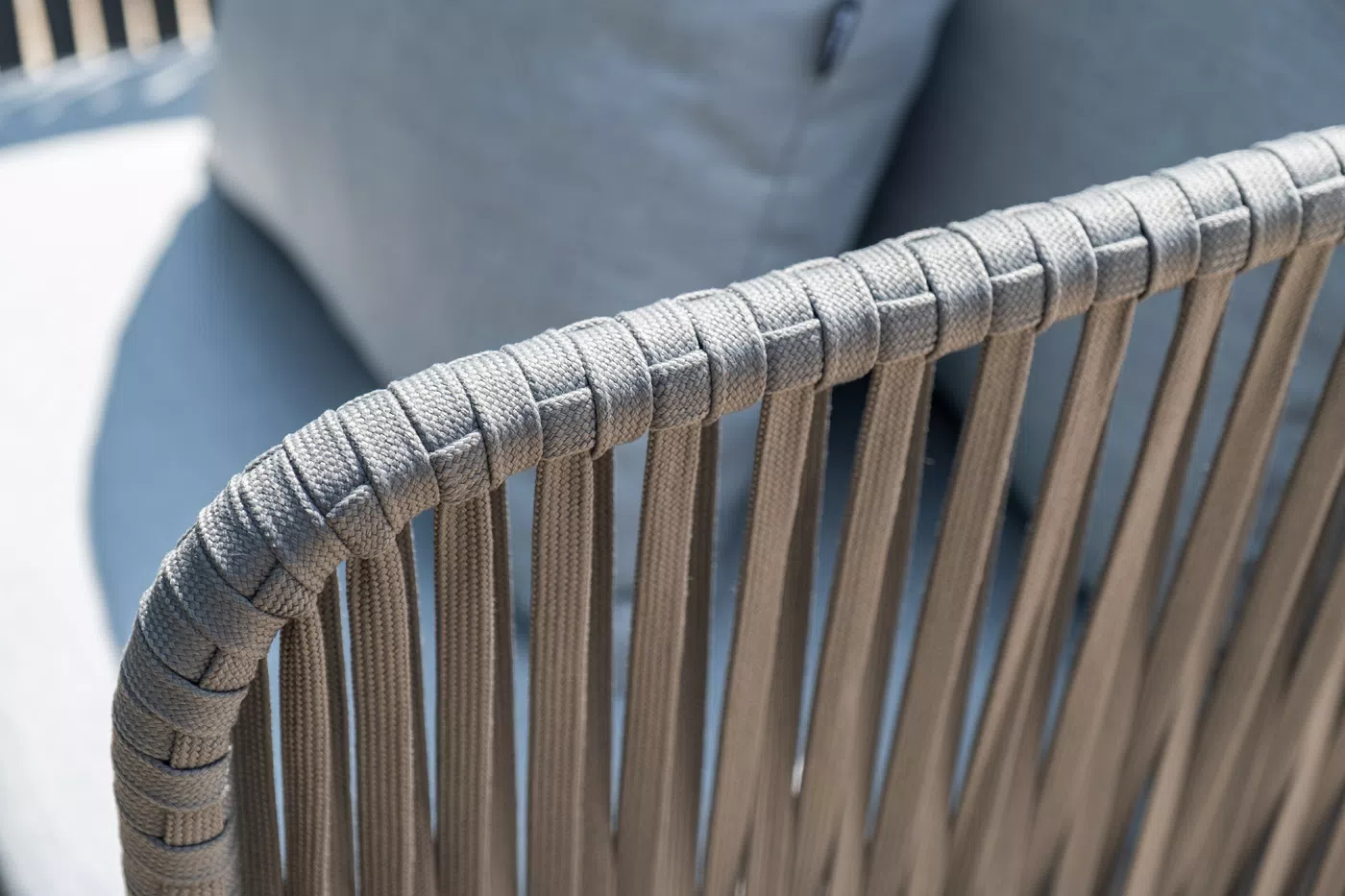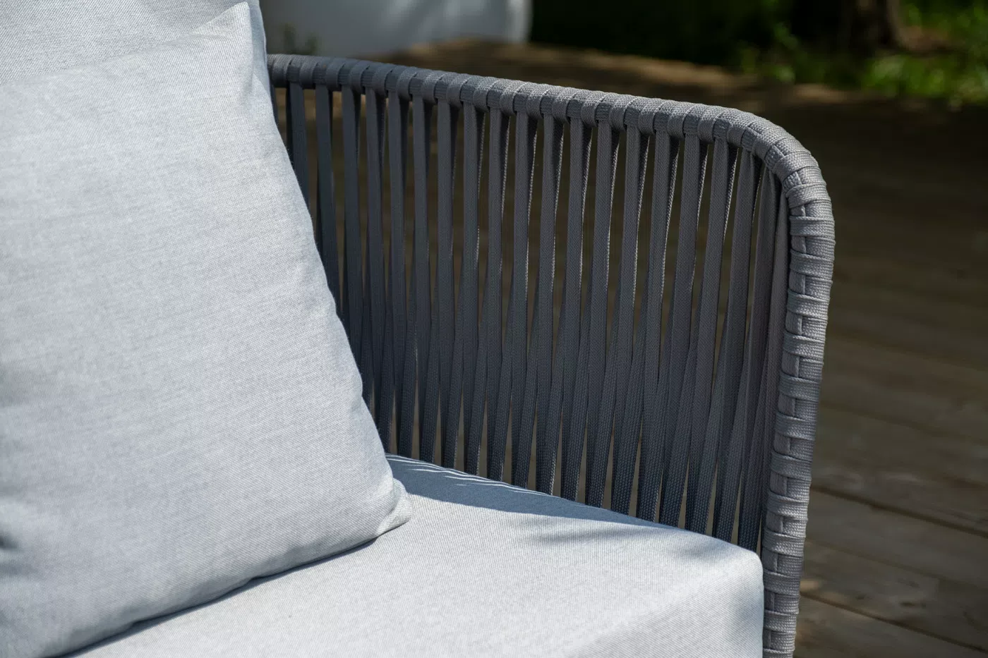 "Багамы" диван 3-местный плетеный из роупа, каркас алюминий темно-серый (RAL7024) муар, роуп серый 15мм, ткань светло-серая