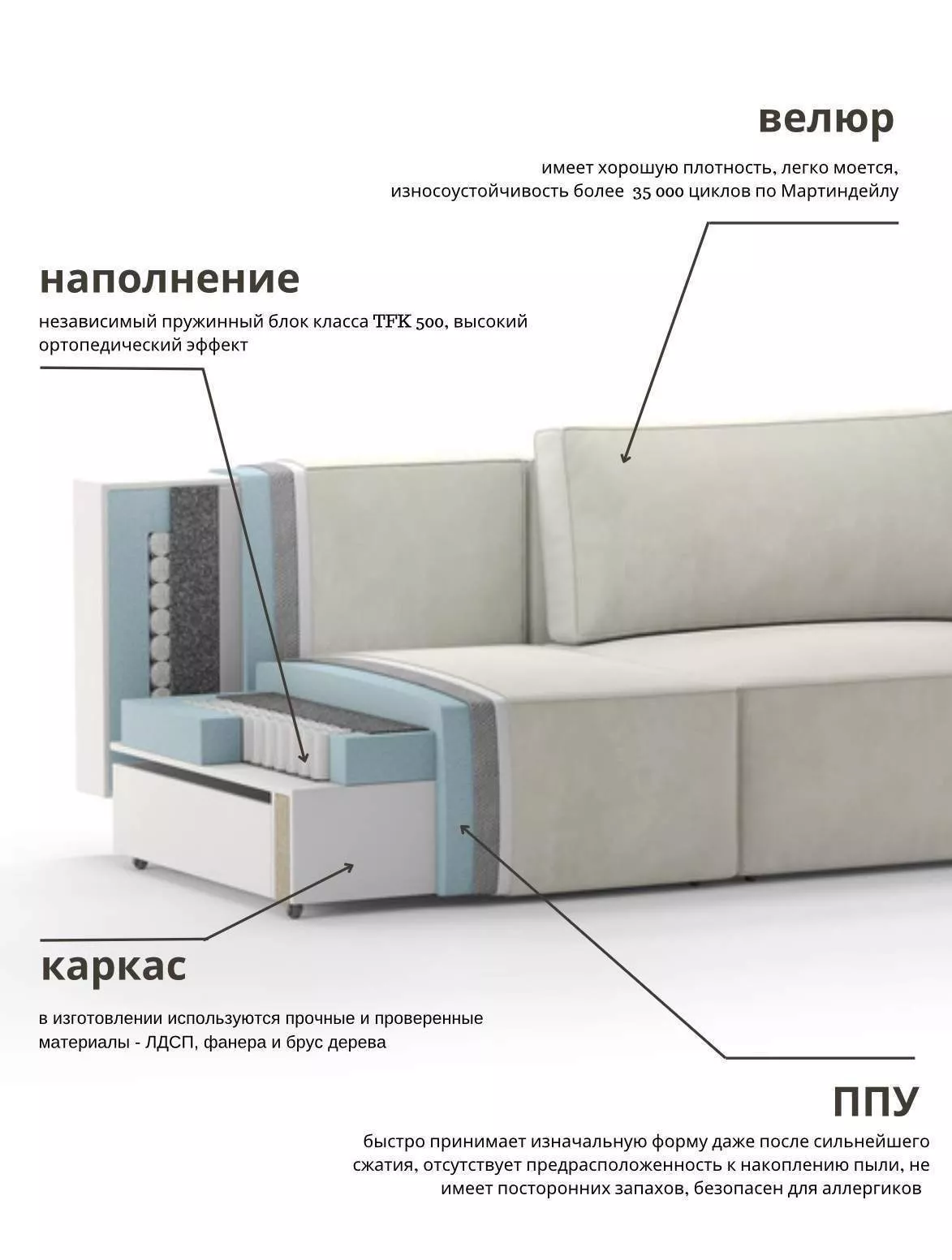 Диван исполнен в ткани, которая имеет отличные характеристики, хорошую плотность и легко моется, износоустойчивость 75000 циклов по Мартиндейлу, Подходит для коммерческого использования.
