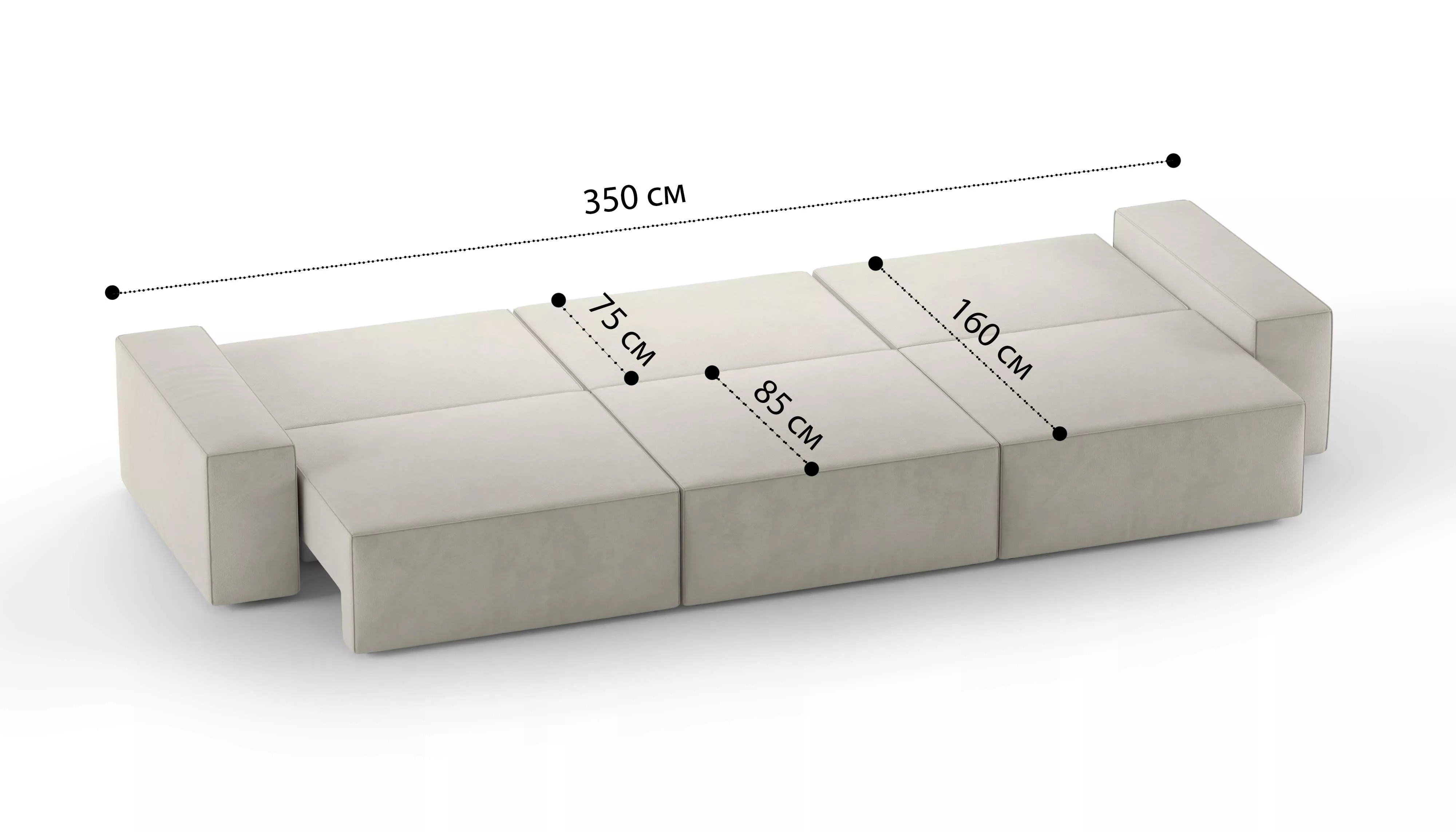 Модель имеет огромное спальное место: 160х300 см и три ящика для хранения.