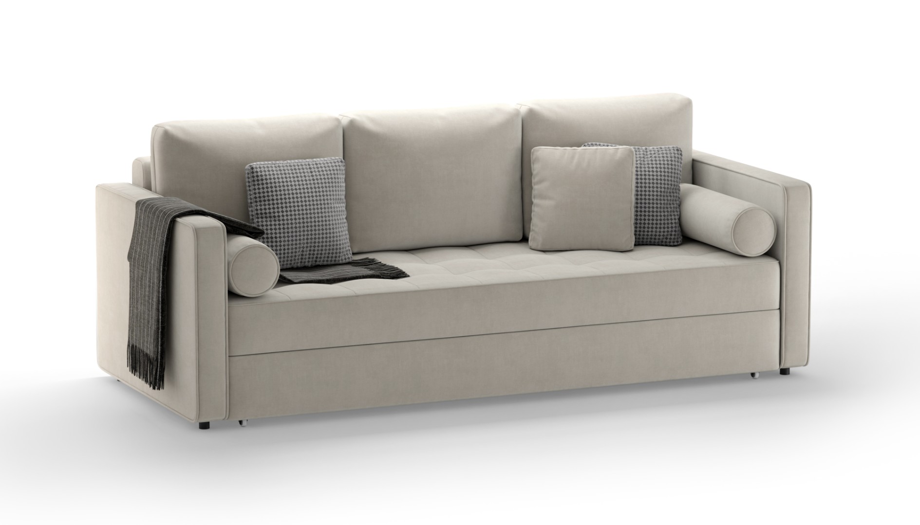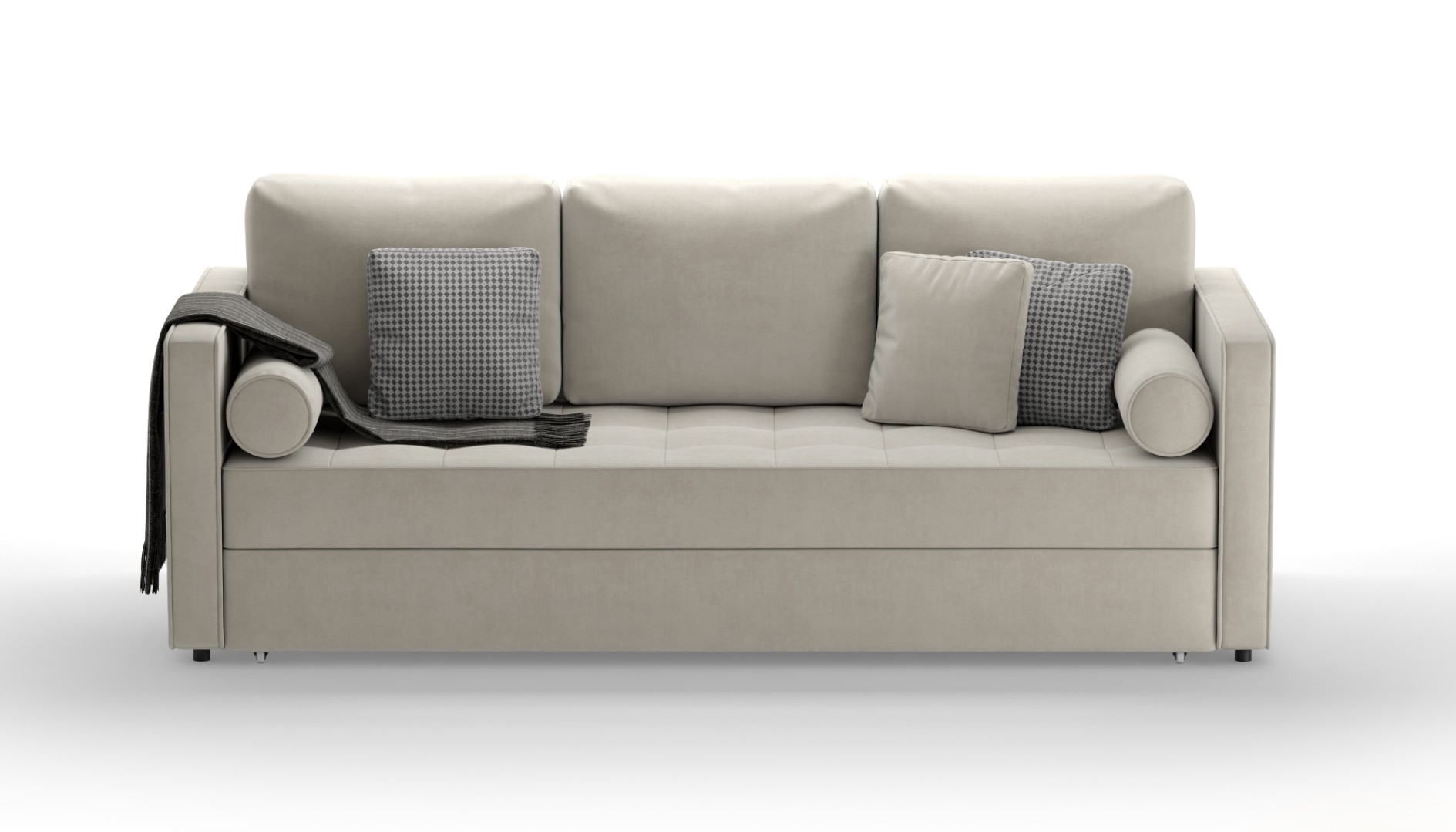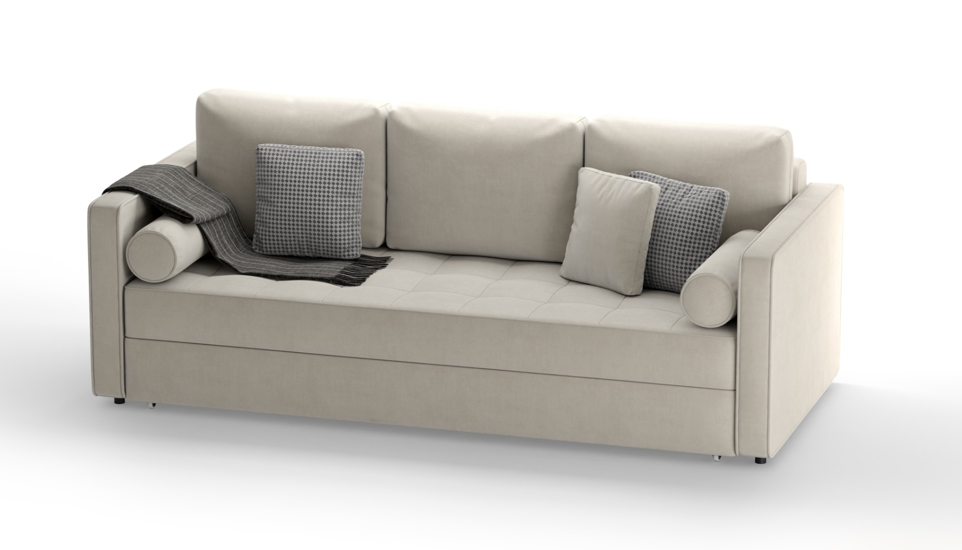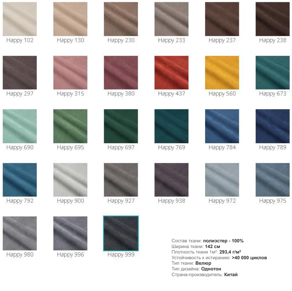 Диван исполнен в ткани велюр которая имеет отличные характеристики, плотная и легко моется, износоустойчивость 40000 циклов по Мартиндейлу.