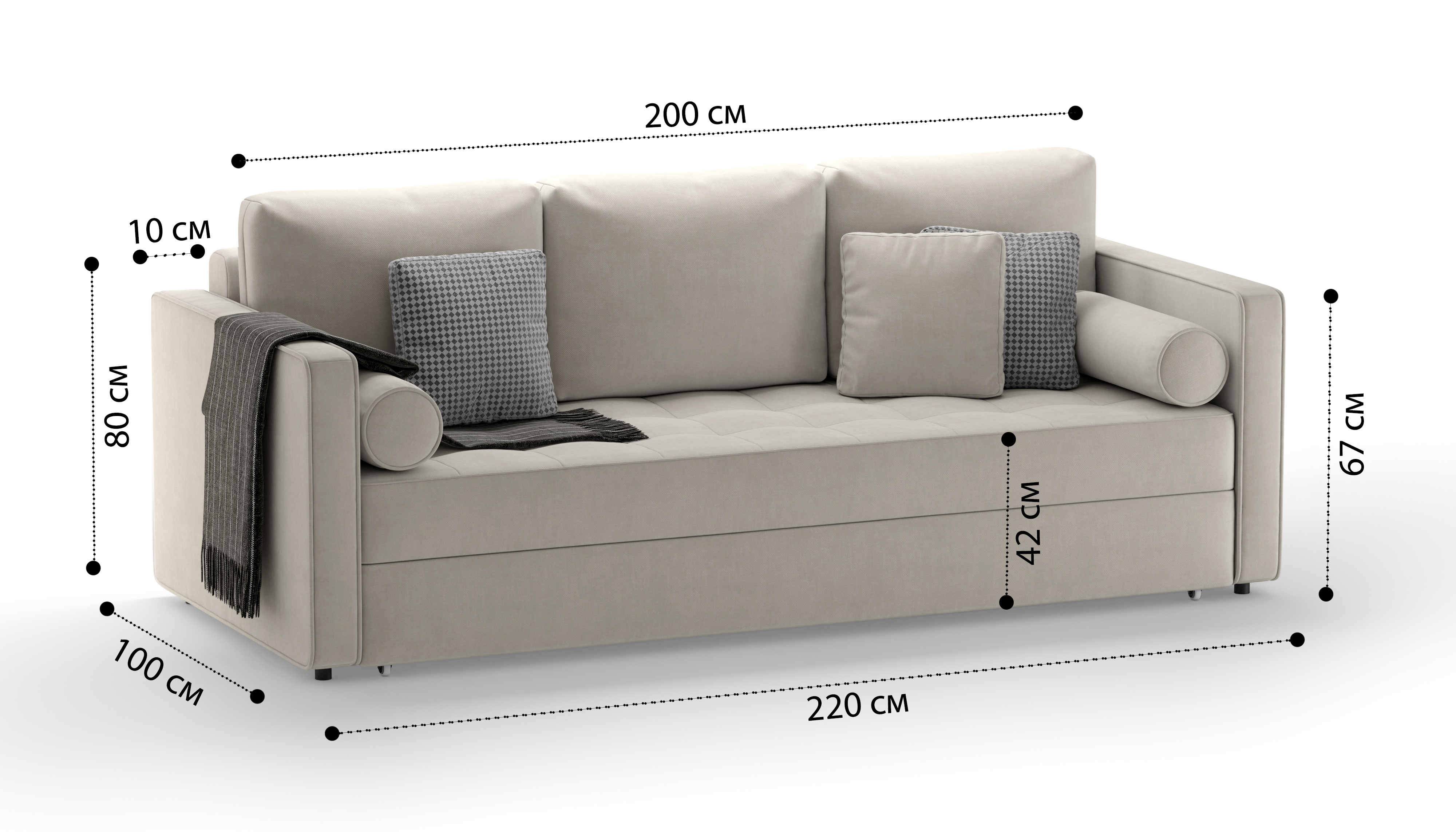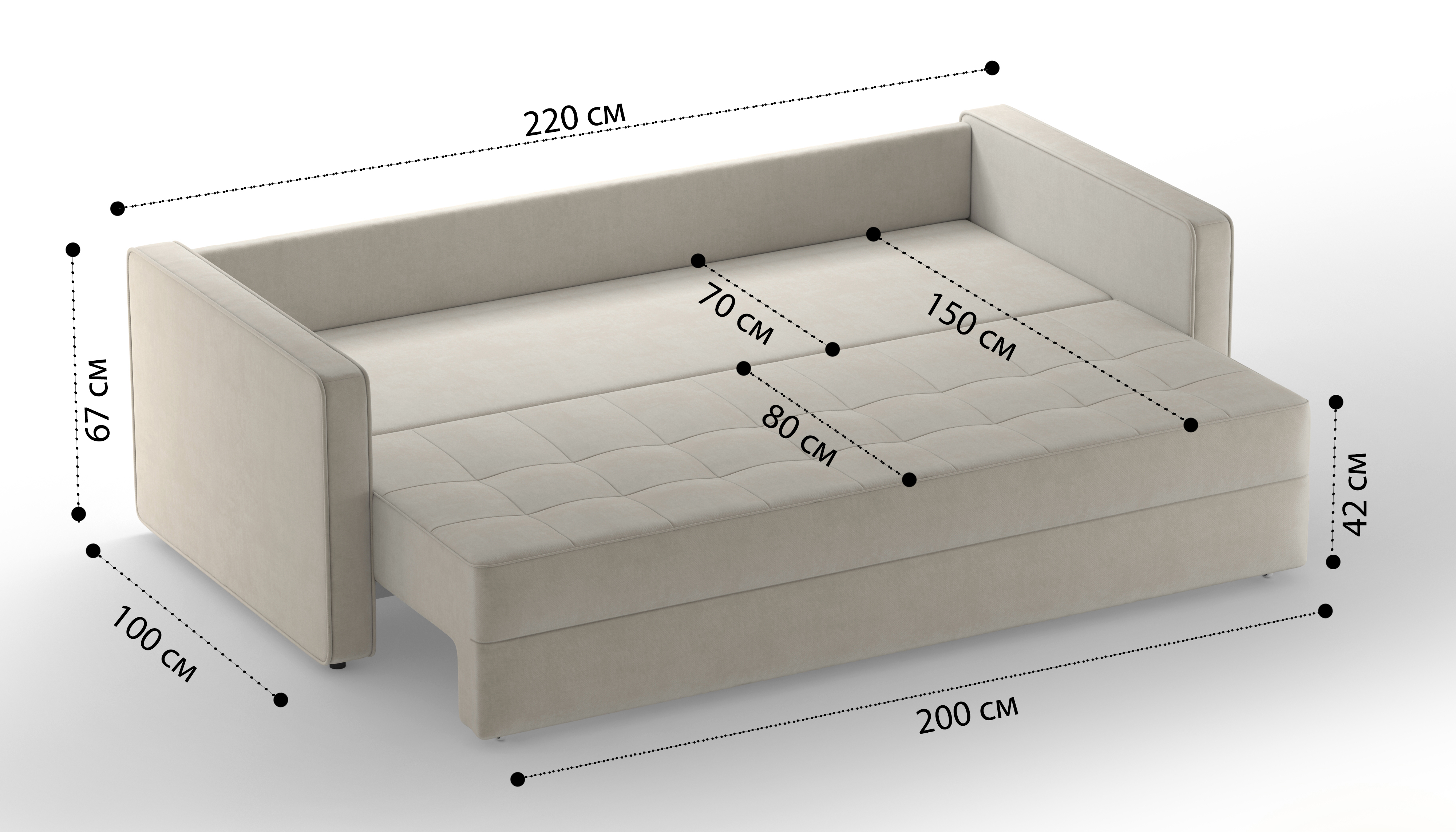 Модель имеет спальное место: 150х200 см и вместительный ящик для хранения.