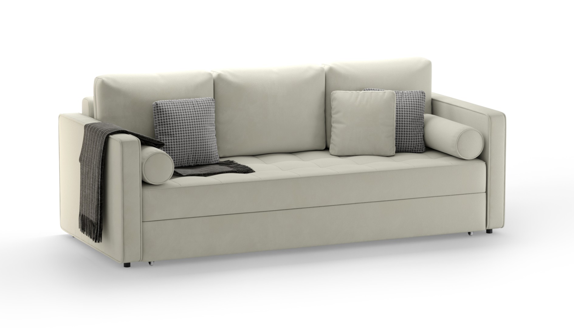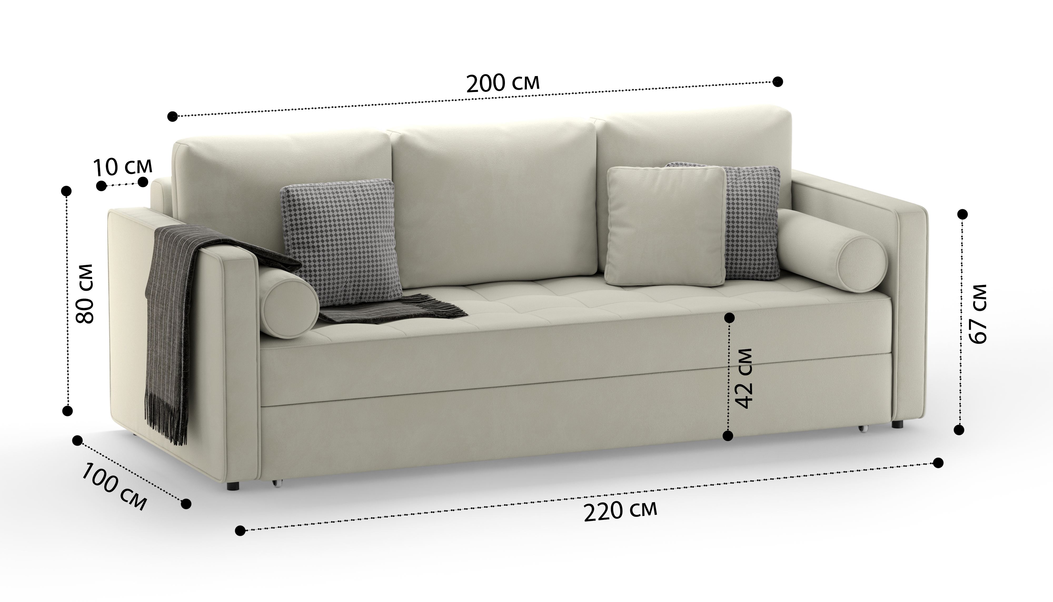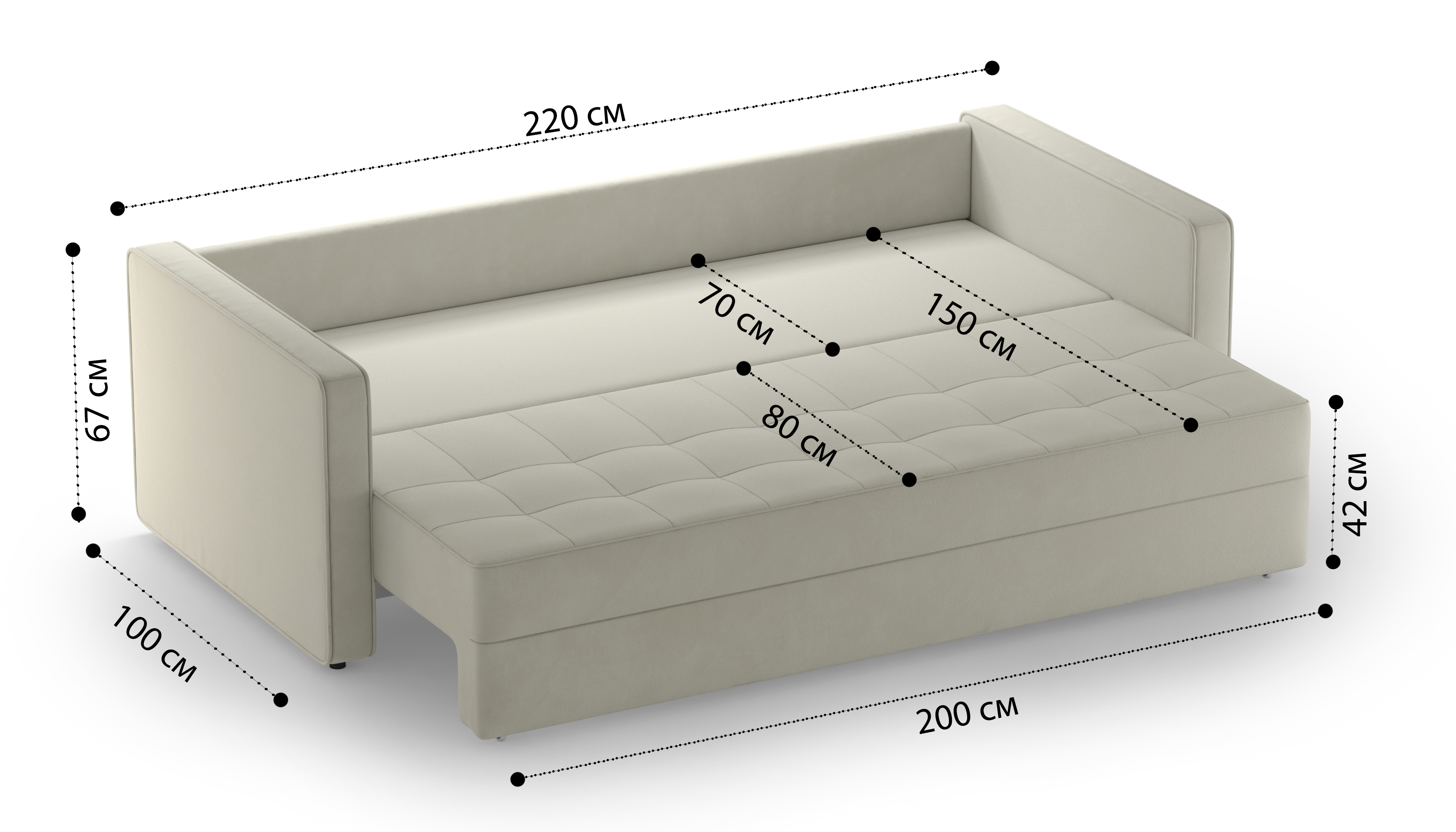 Модель имеет спальное место: 150х200 см и вместительный ящик для хранения.