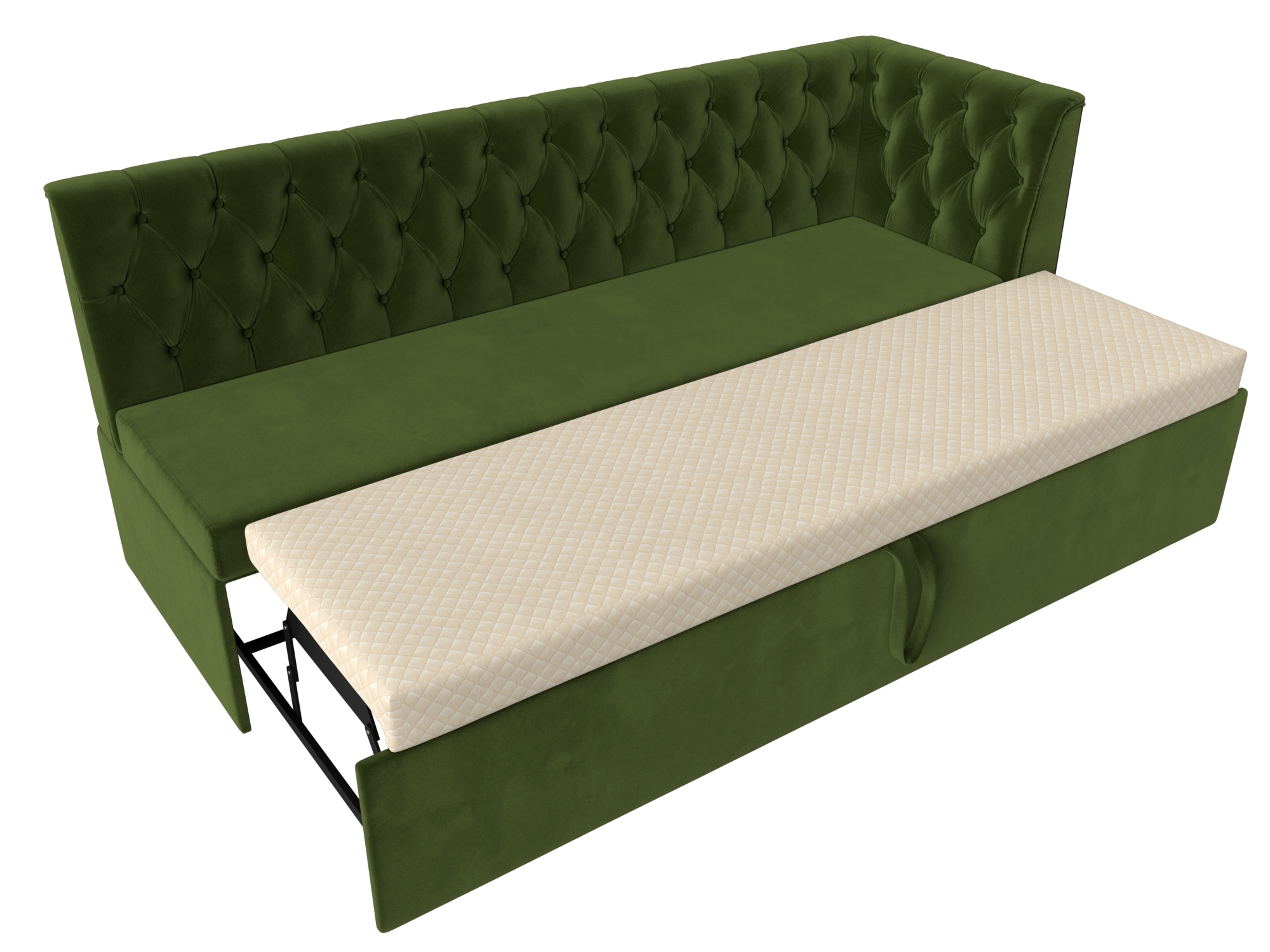 Диван кухонный прямой Маркиз с углом справа Зеленый, Микровельвет