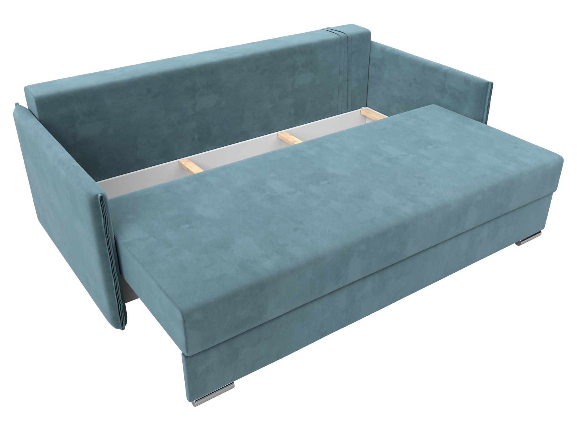 При компактных габаритах: 203x105x90 см подойдет для комнат любых размеров, легко раскладывается, обеспечивая спальное место 142x190 см.