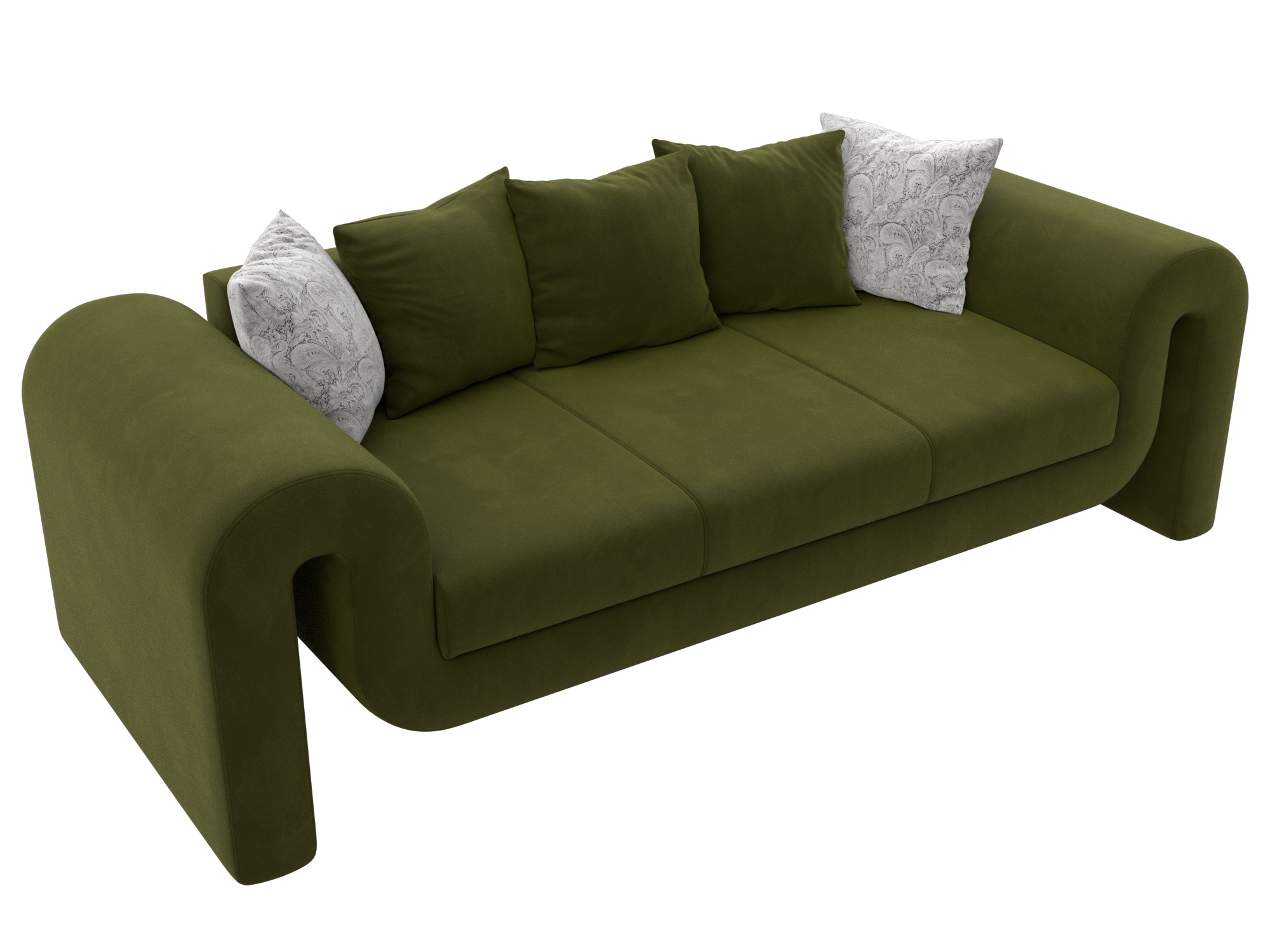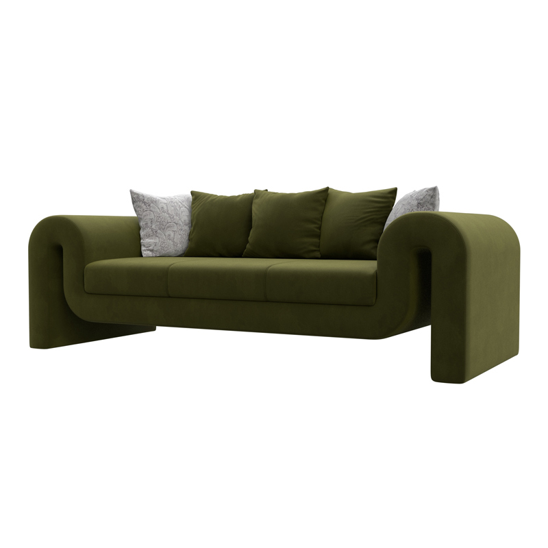 Диван прямой Волна, Зеленый; Серый, Микровельвет; Велюр