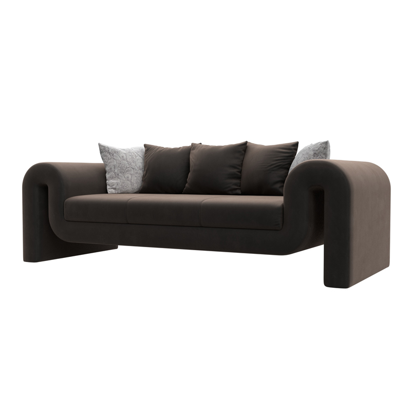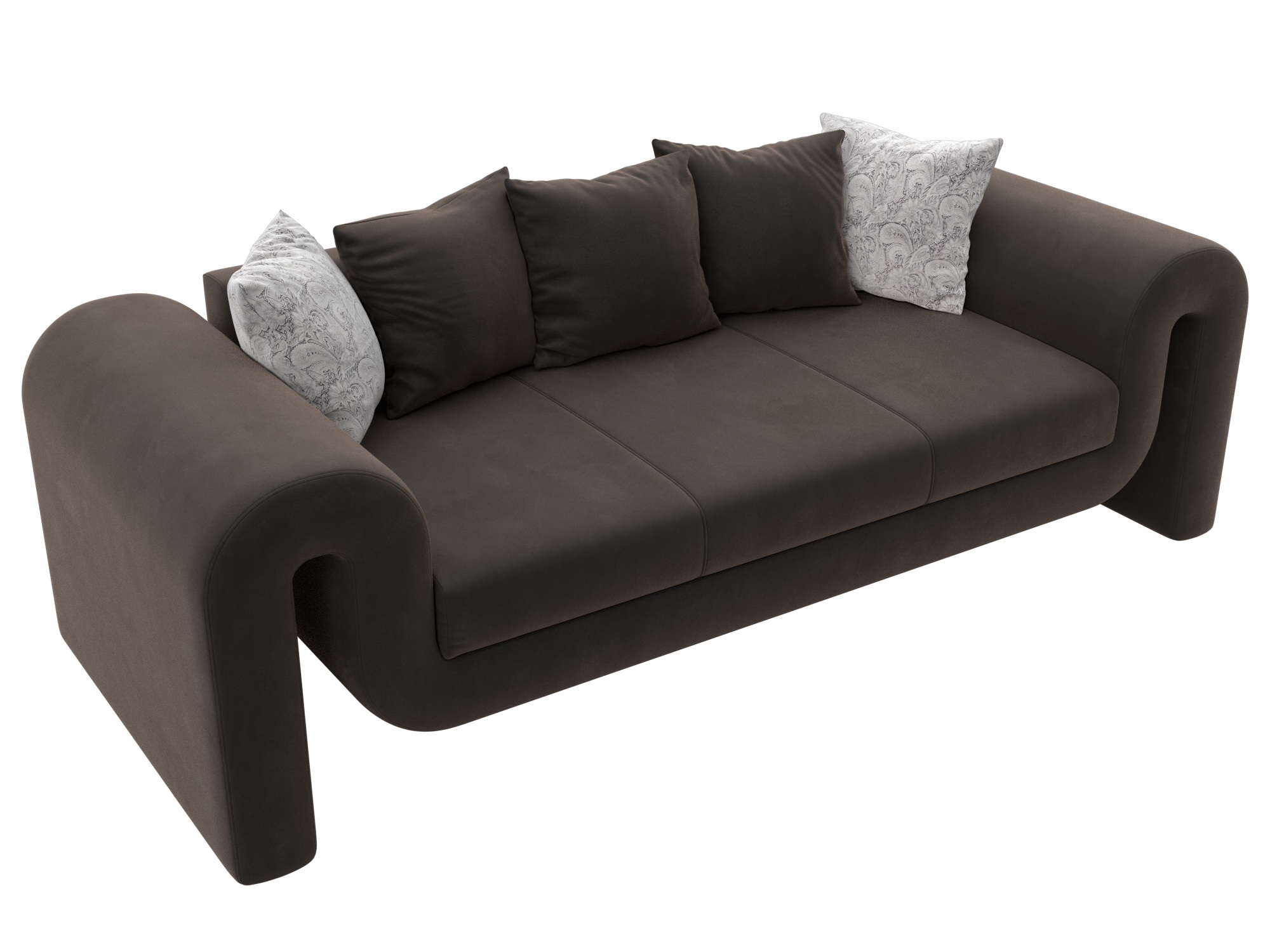 Диван прямой Волна , Seven 727 коричневый;Seven 17 серый, Велюр