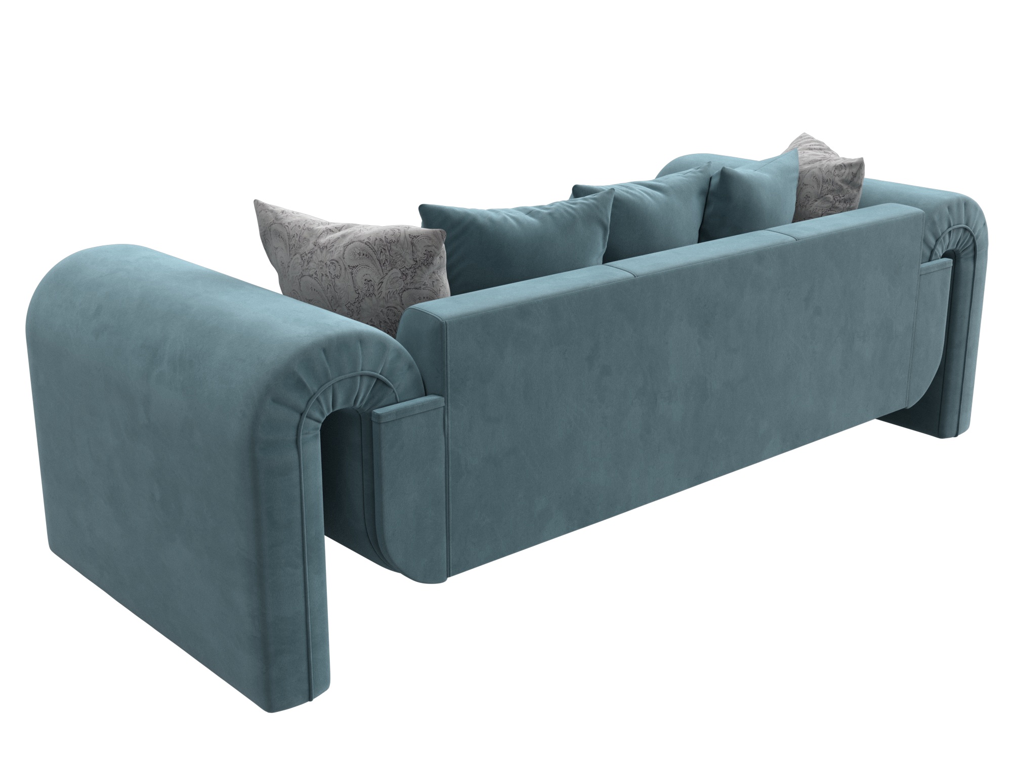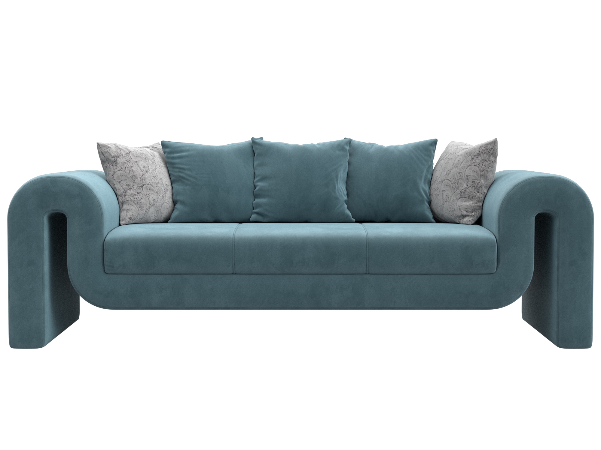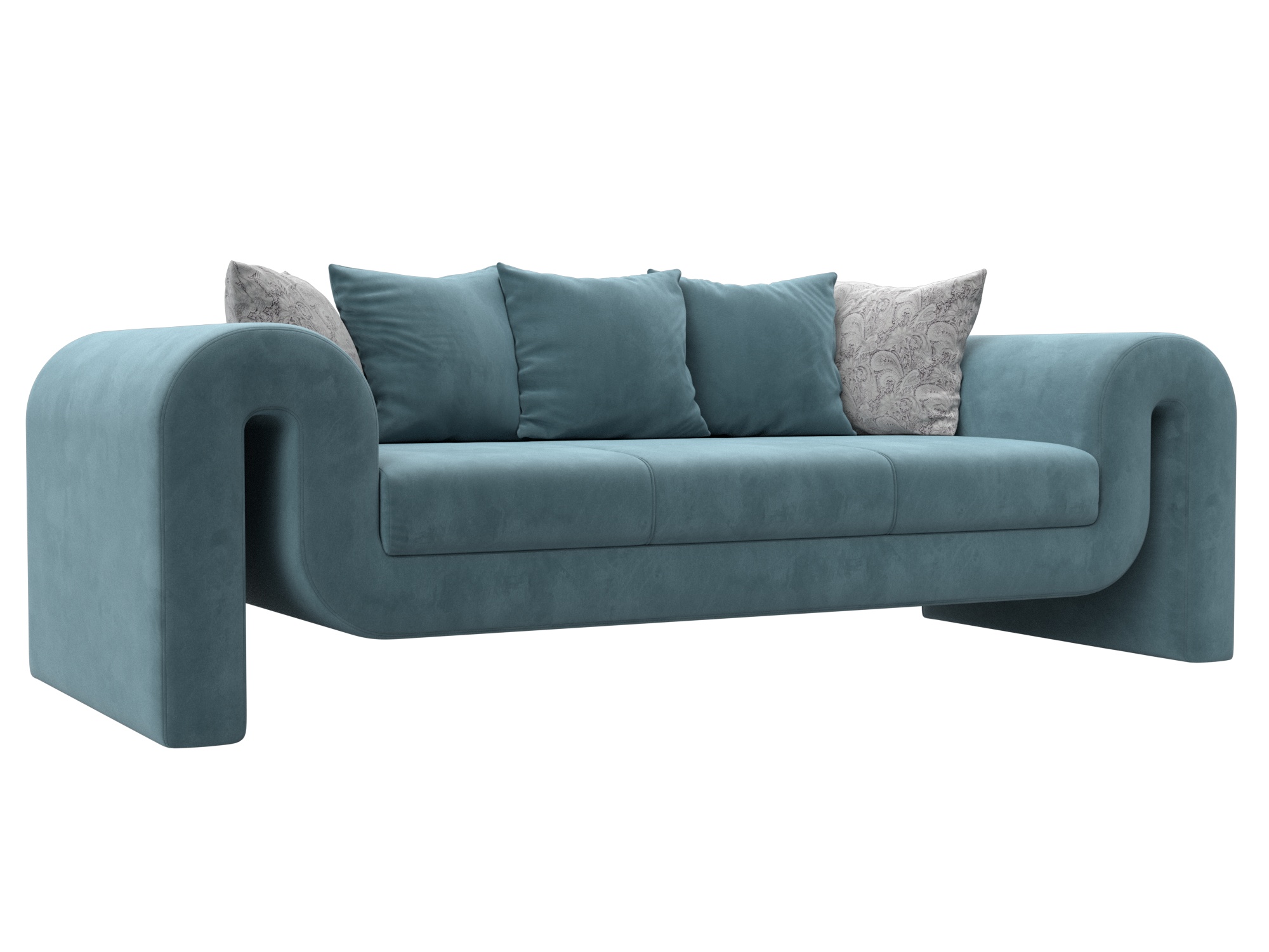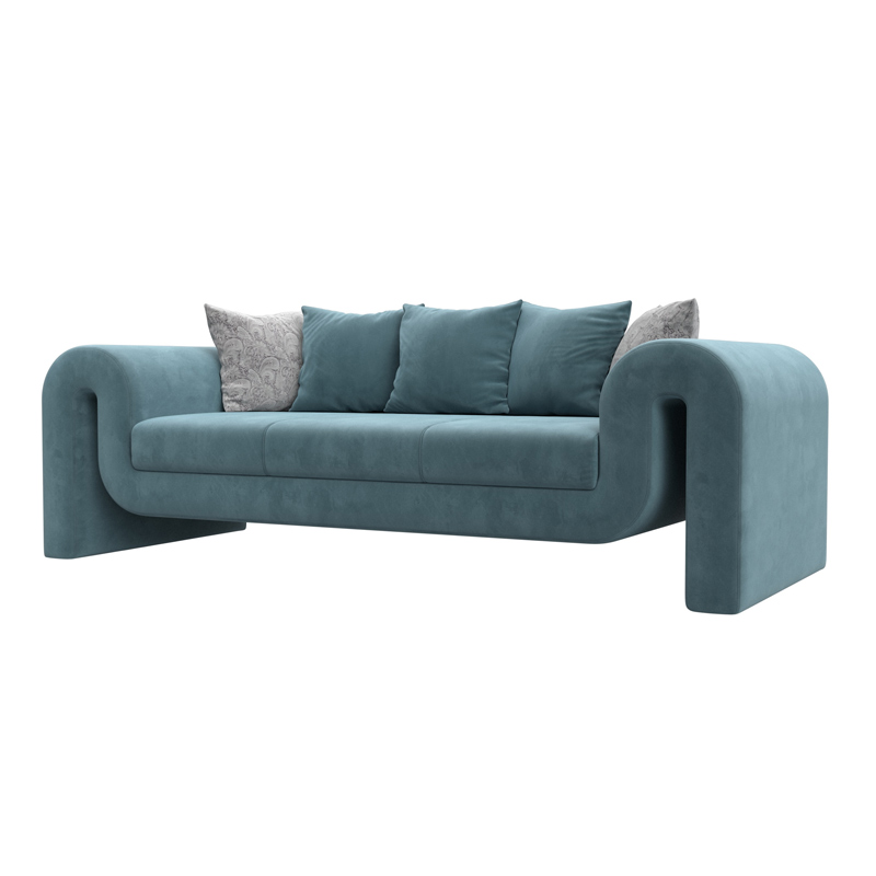 Диван прямой Волна, Seven 113 бирюзовый;Seven 17 серый, Велюр