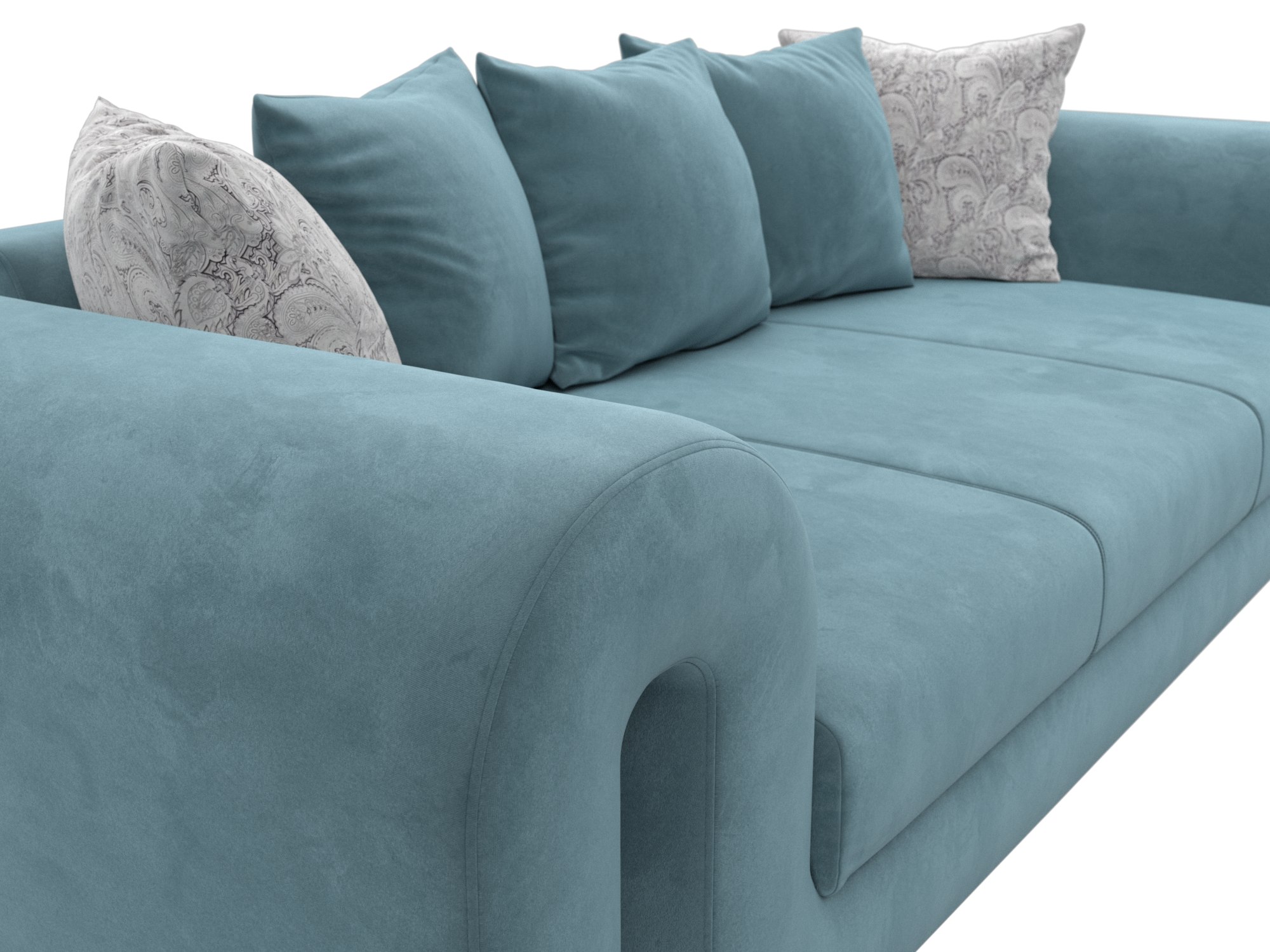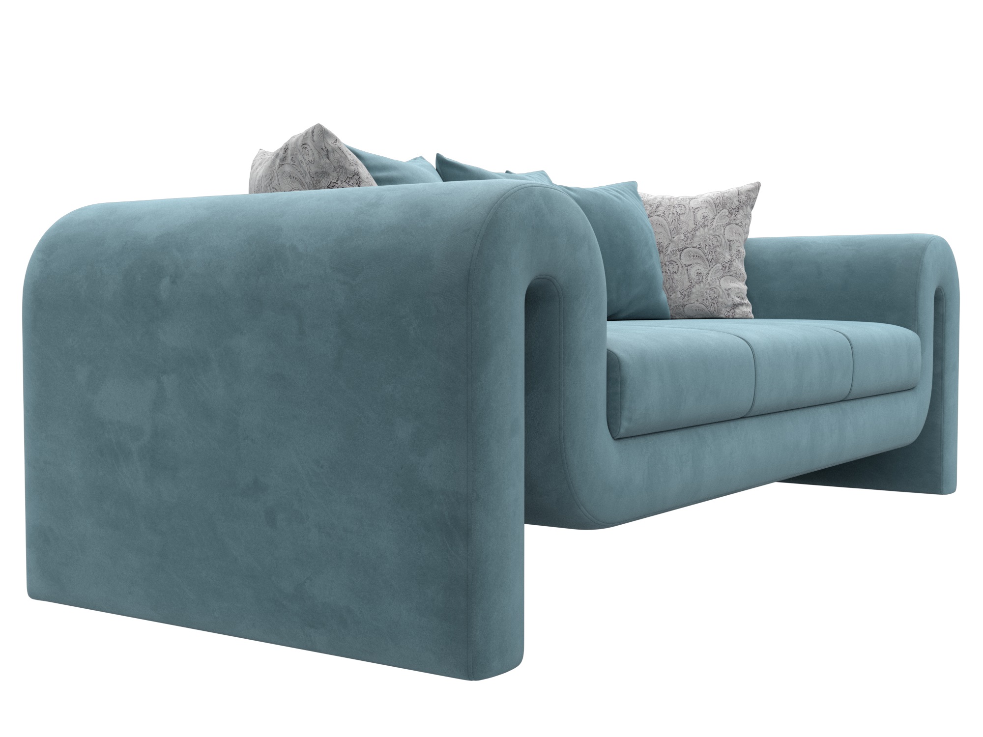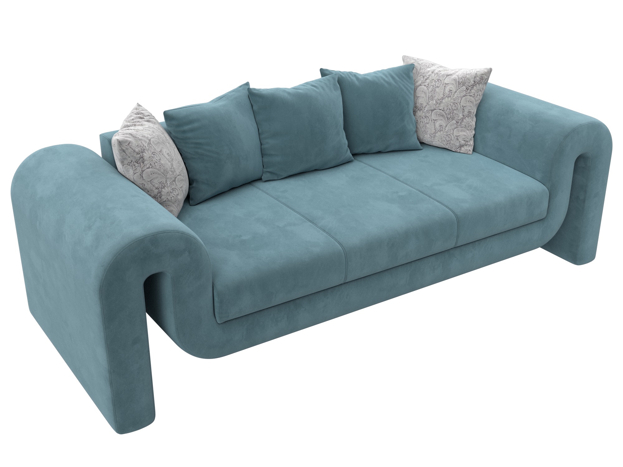 Диван прямой Волна, Seven 113 бирюзовый;Seven 17 серый, Велюр