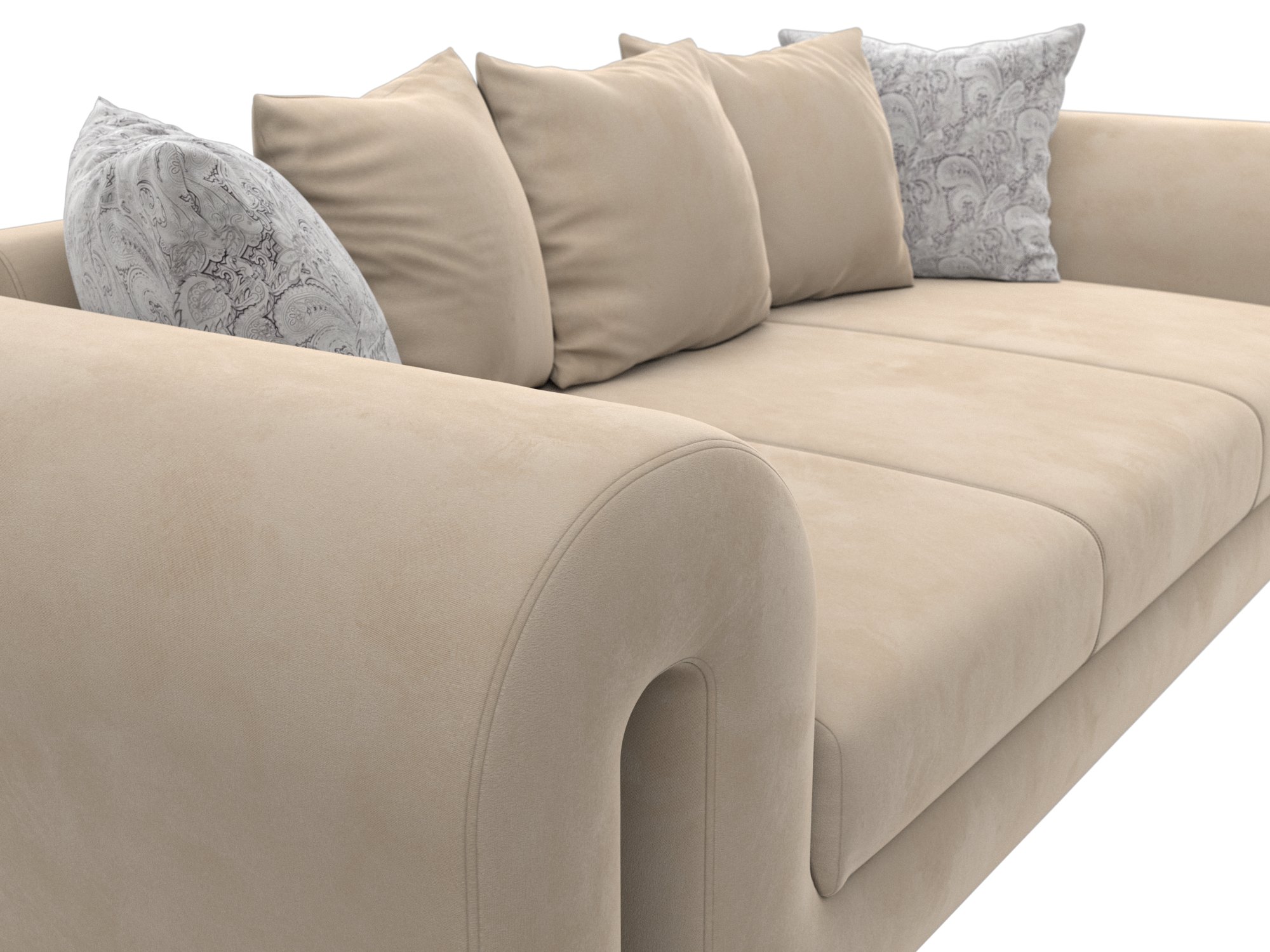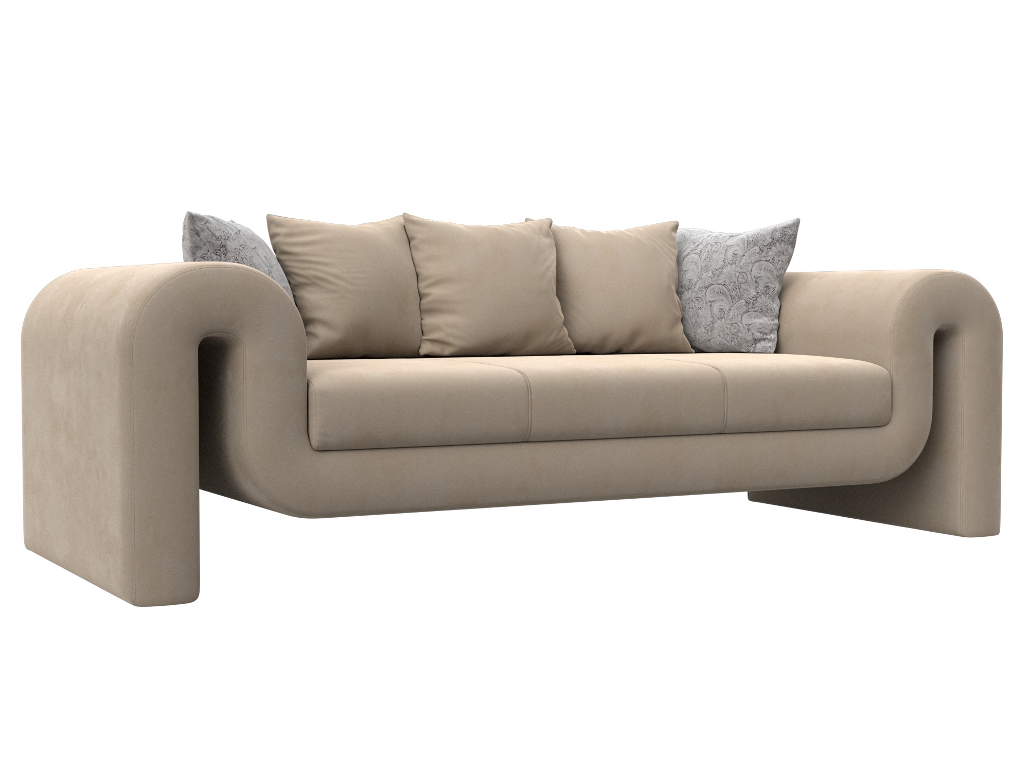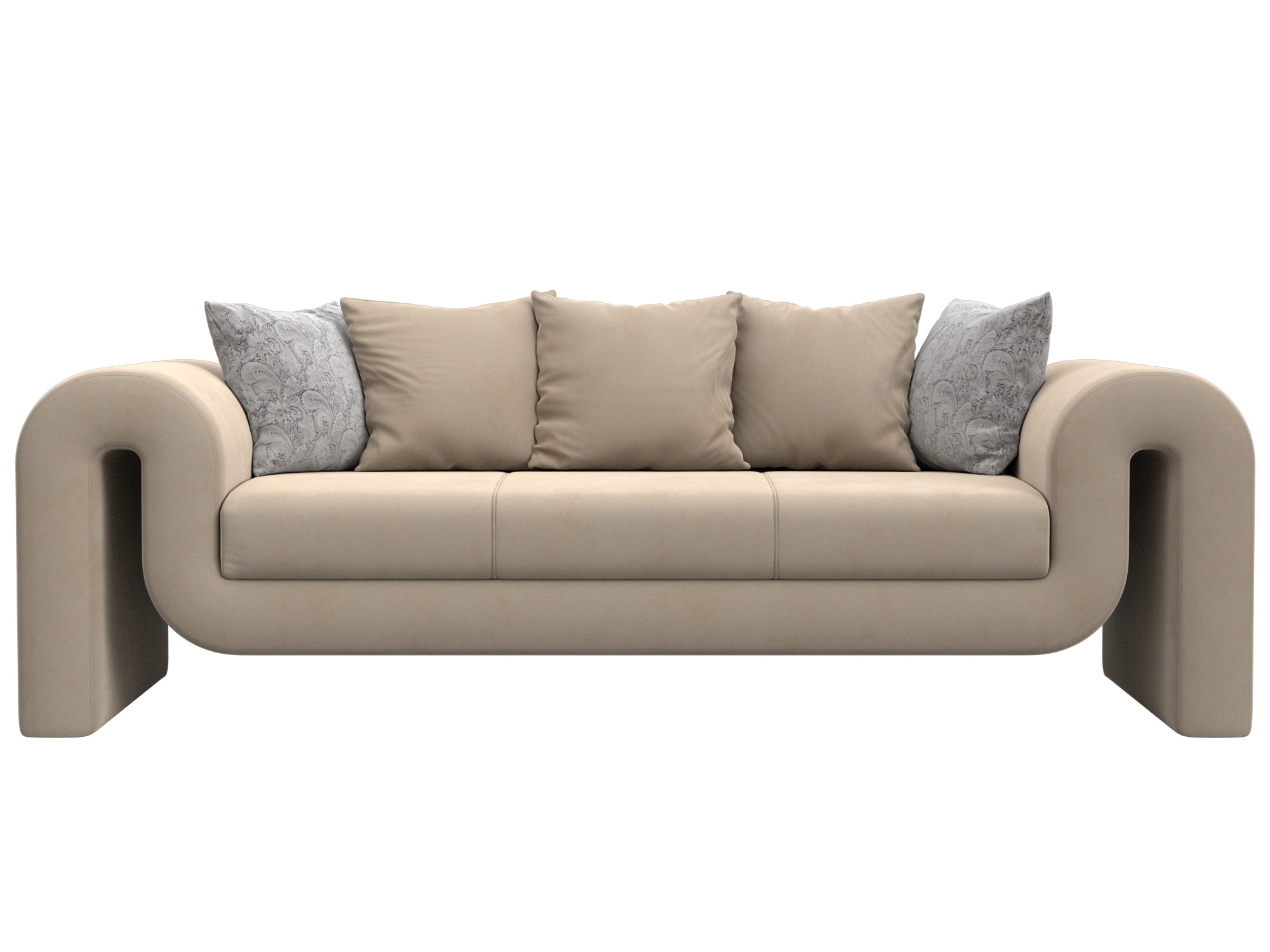 Диван прямой Волна, Seven 729 бежевый;Seven 17 серый, Велюр