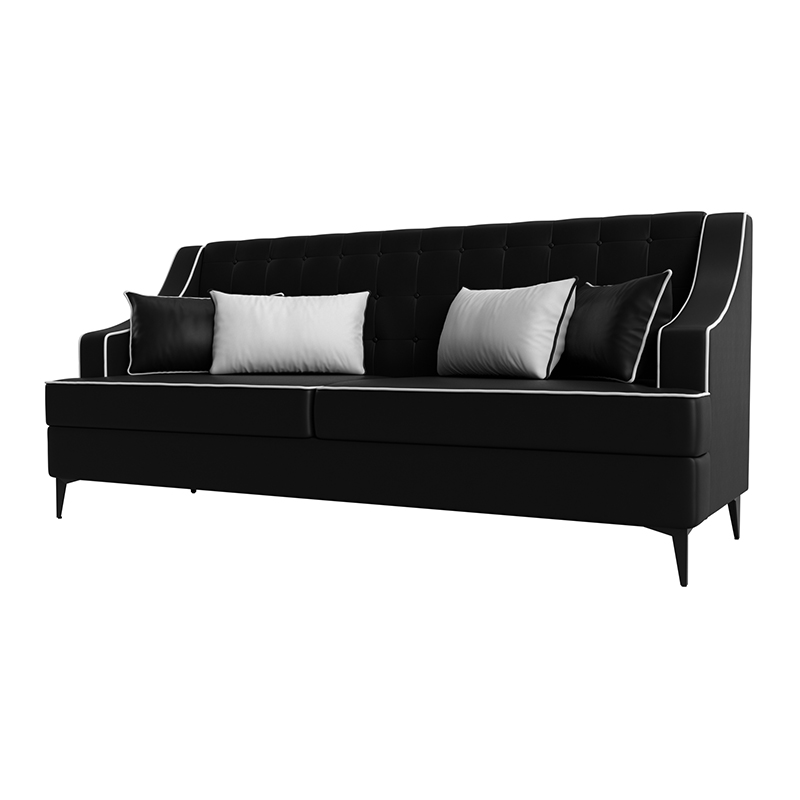 Диван кухонный прямой Марк Белый\Черный, Экокожа