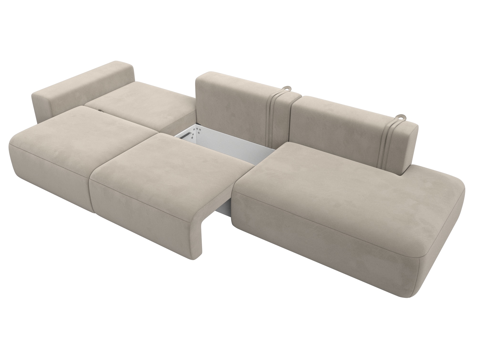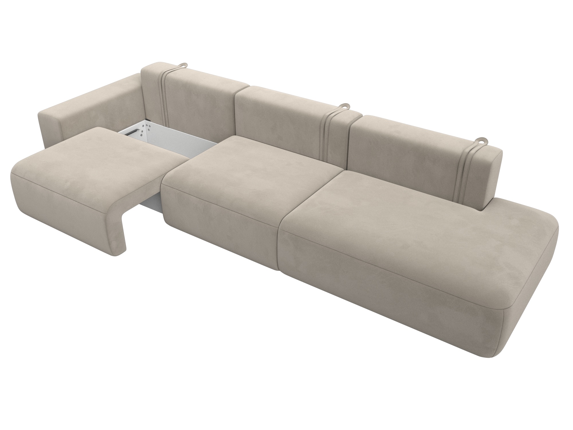 Диван прямой Лига-036 НПБ Модерн Лонг подлокотник слева, Бежевый, Микровельвет