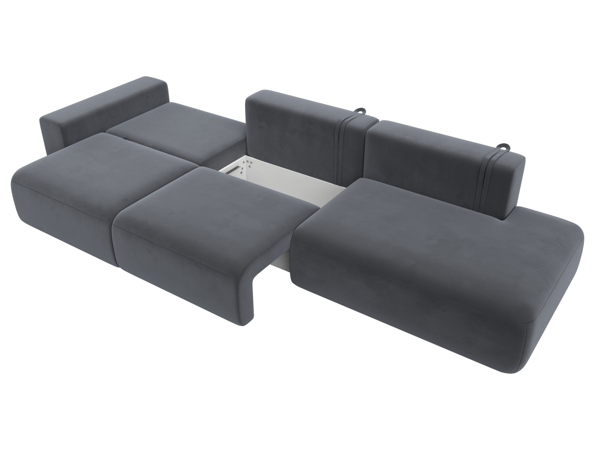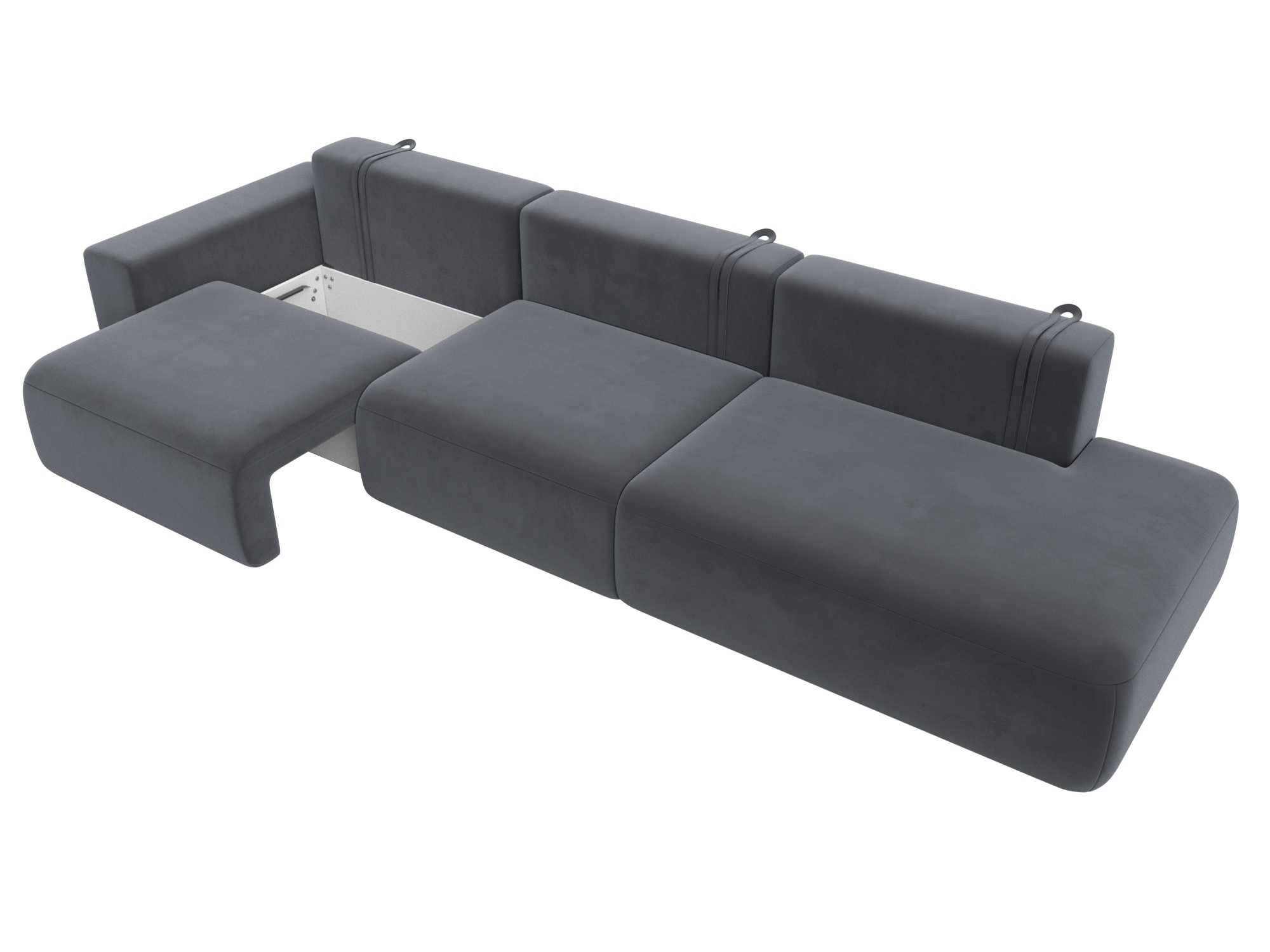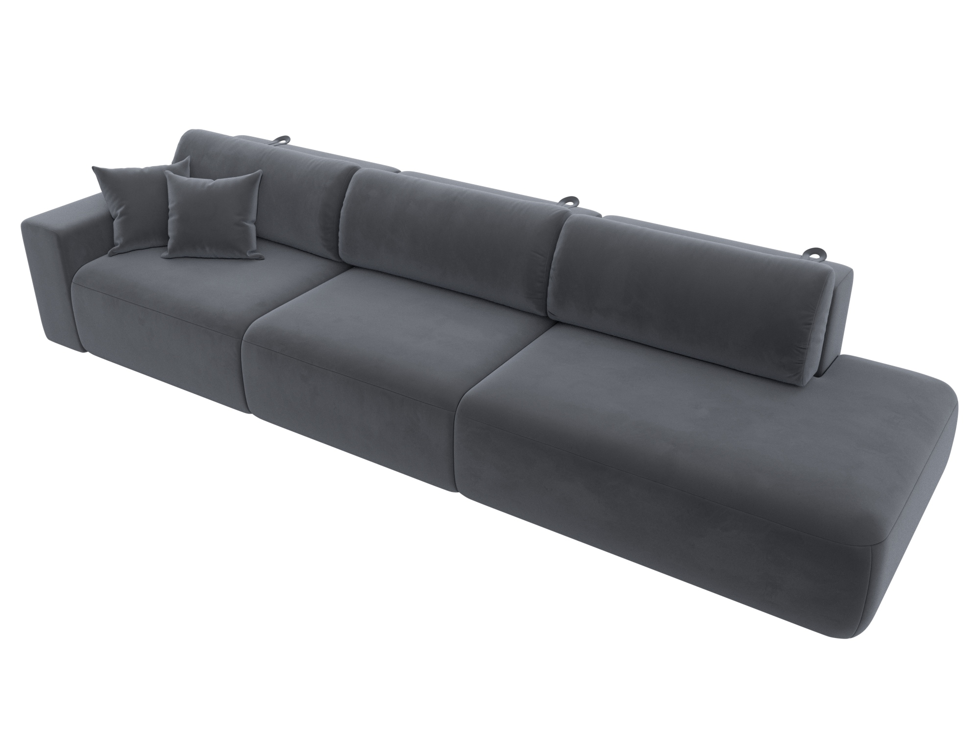 Диван прямой Лига-036 НПБ Модерн Лонг подлокотник слева, SEVEN 17 серый, Велюр