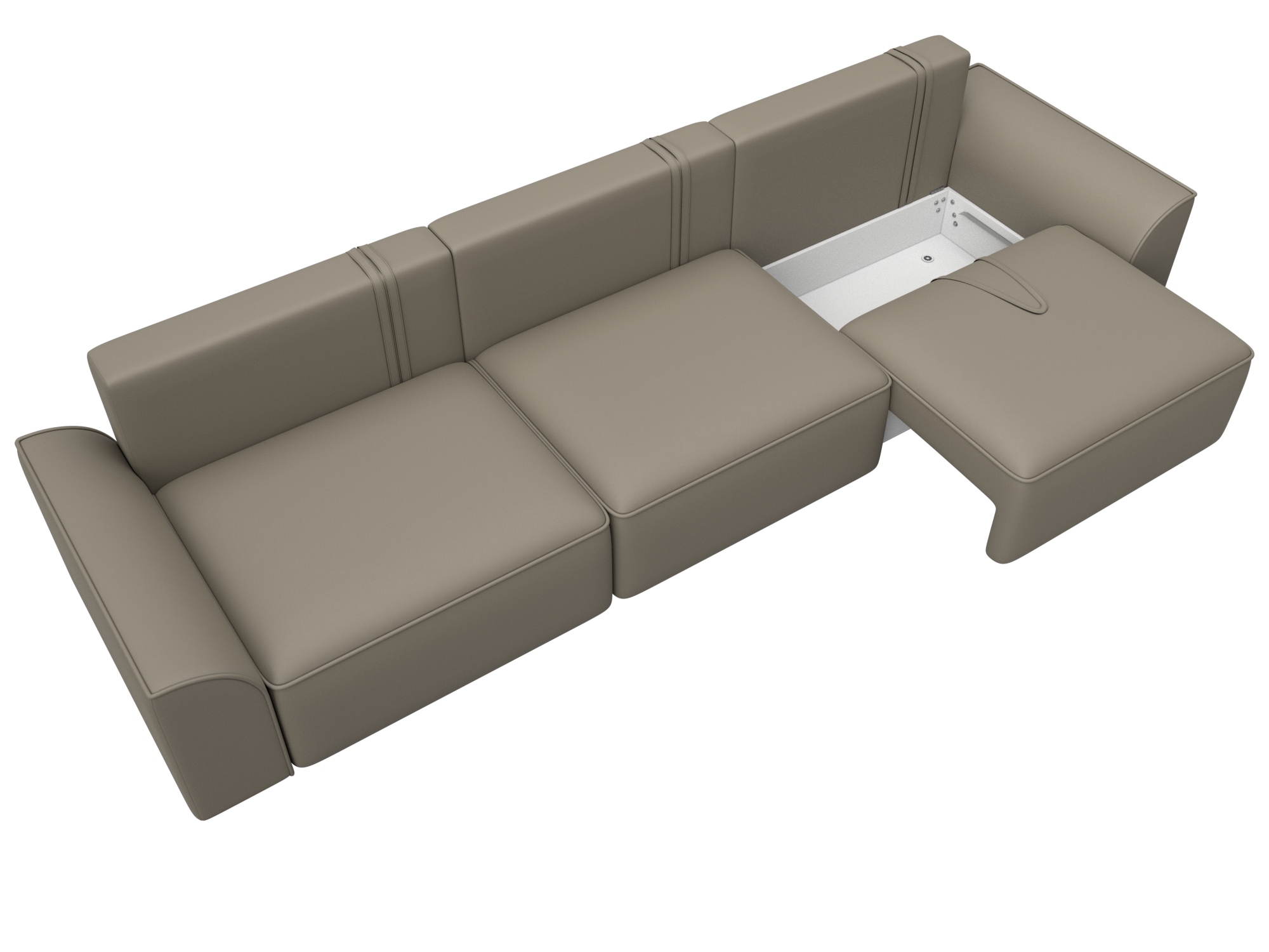 Диван прямой Лига-048 НПБ Лонг Бежевый, Экокожа