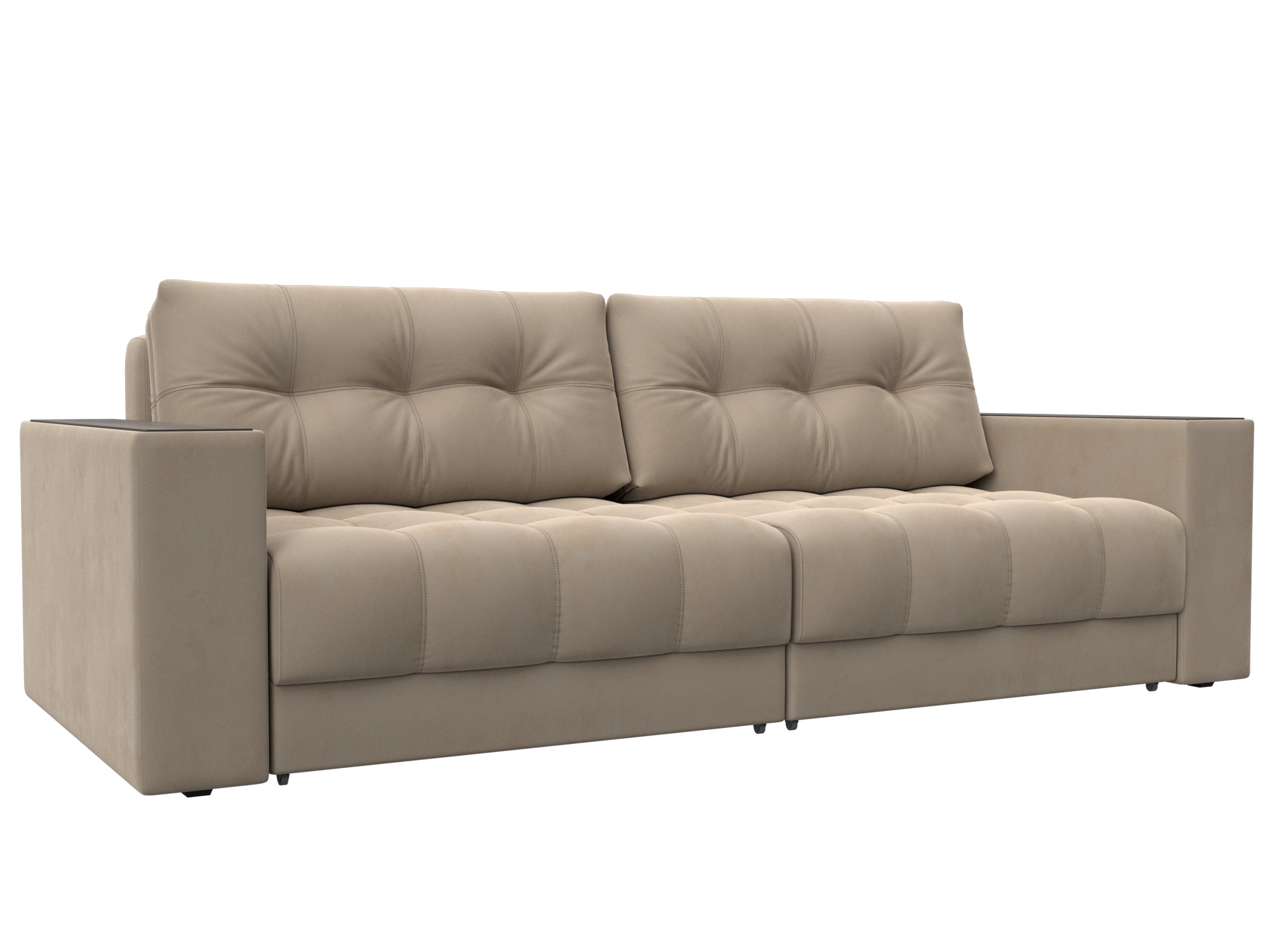 Диван прямой с декором Лига-049 НПБ, SEVEN 729 бежевый, Велюр