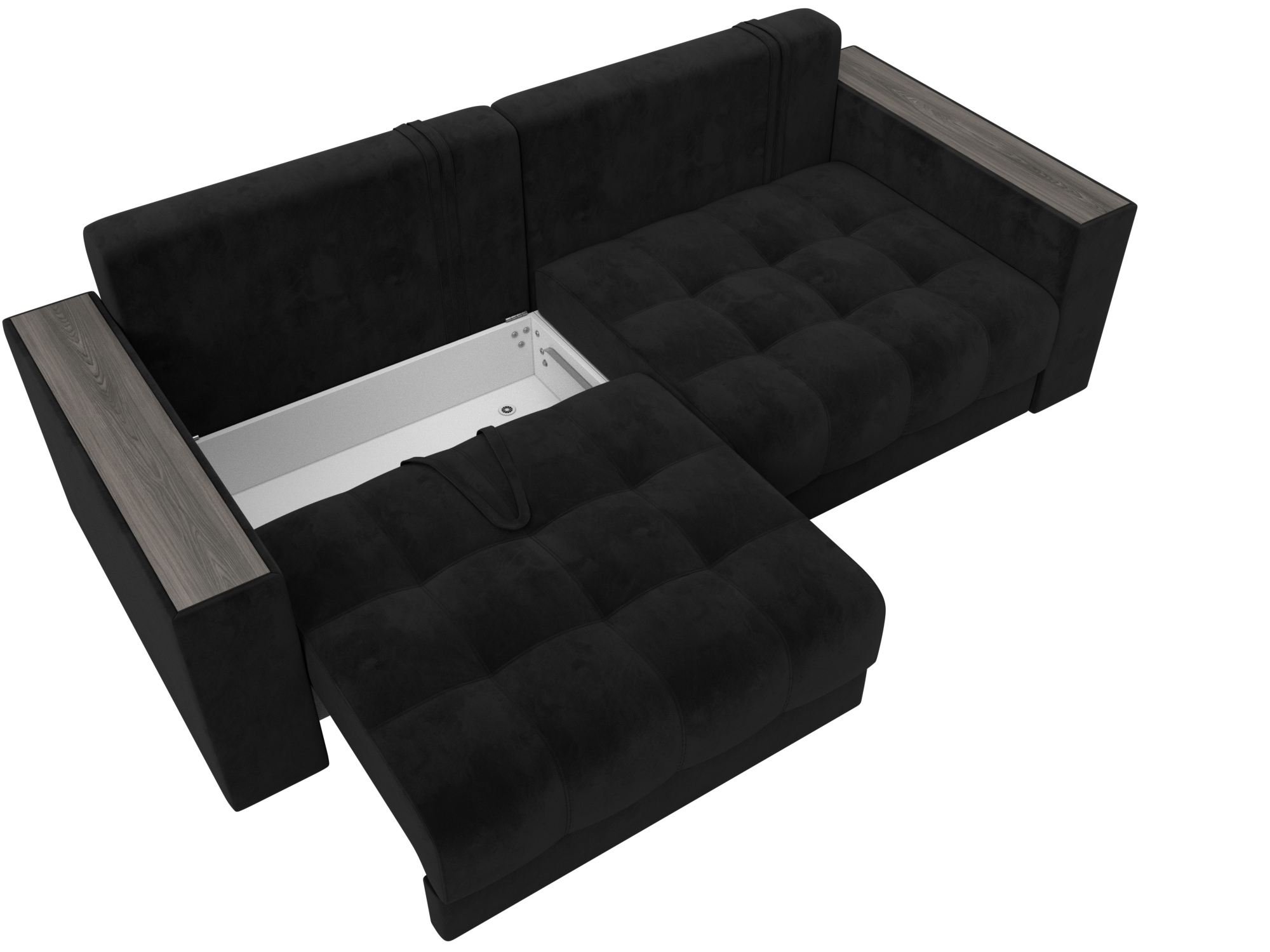 Диван прямой с декором Лига-049 НПБ, SEVEN 35 черный, Велюр