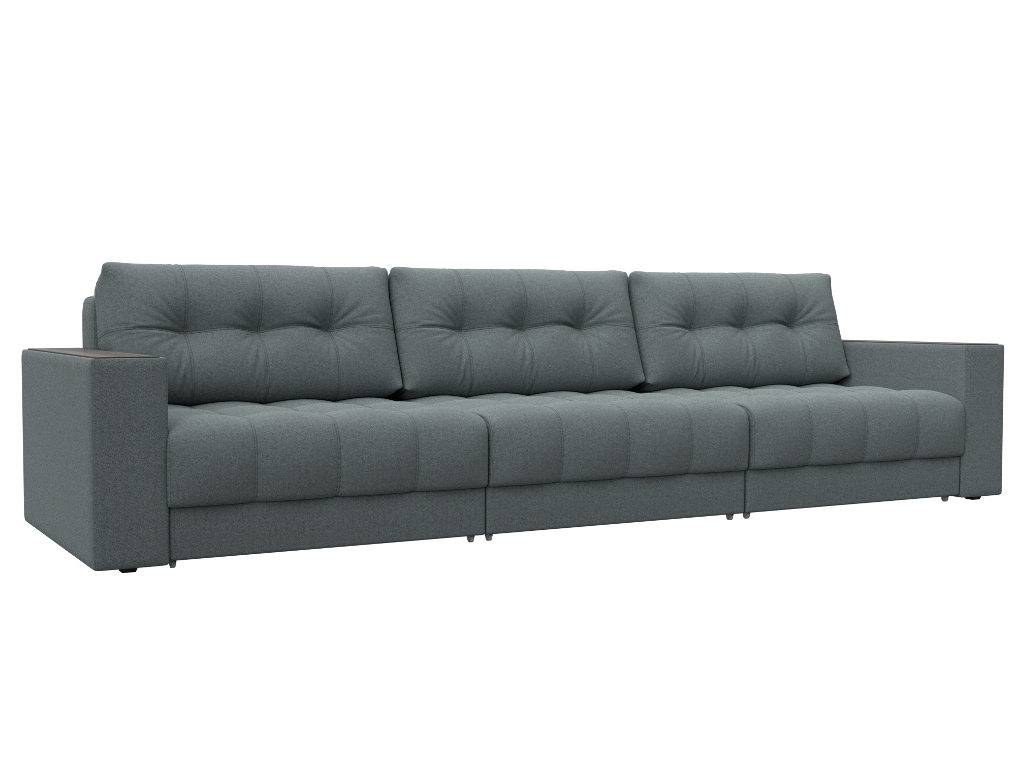 Диван прямой с декором Лига-049 НПБ Лонг, Амур 07 серый, Рогожка