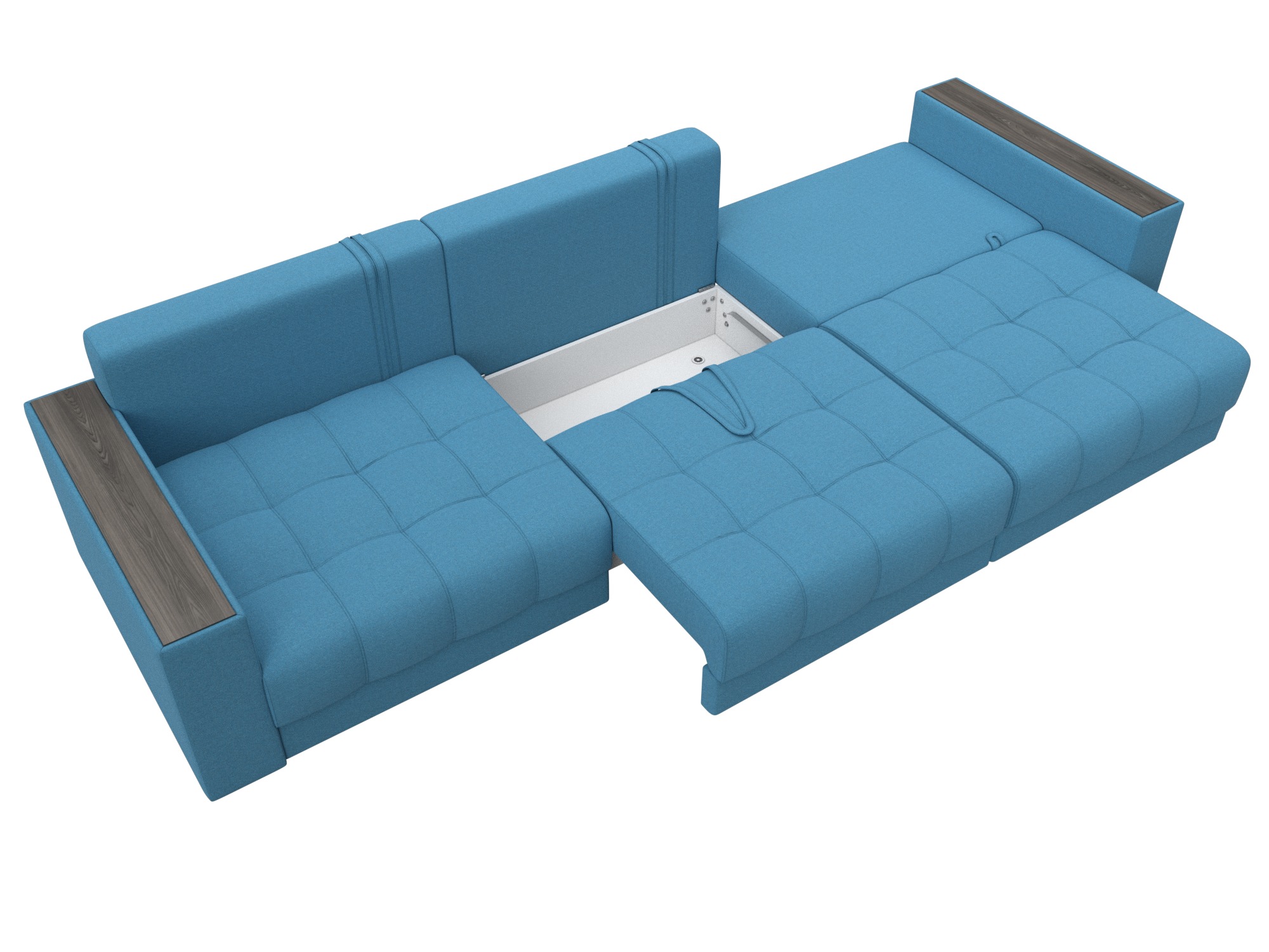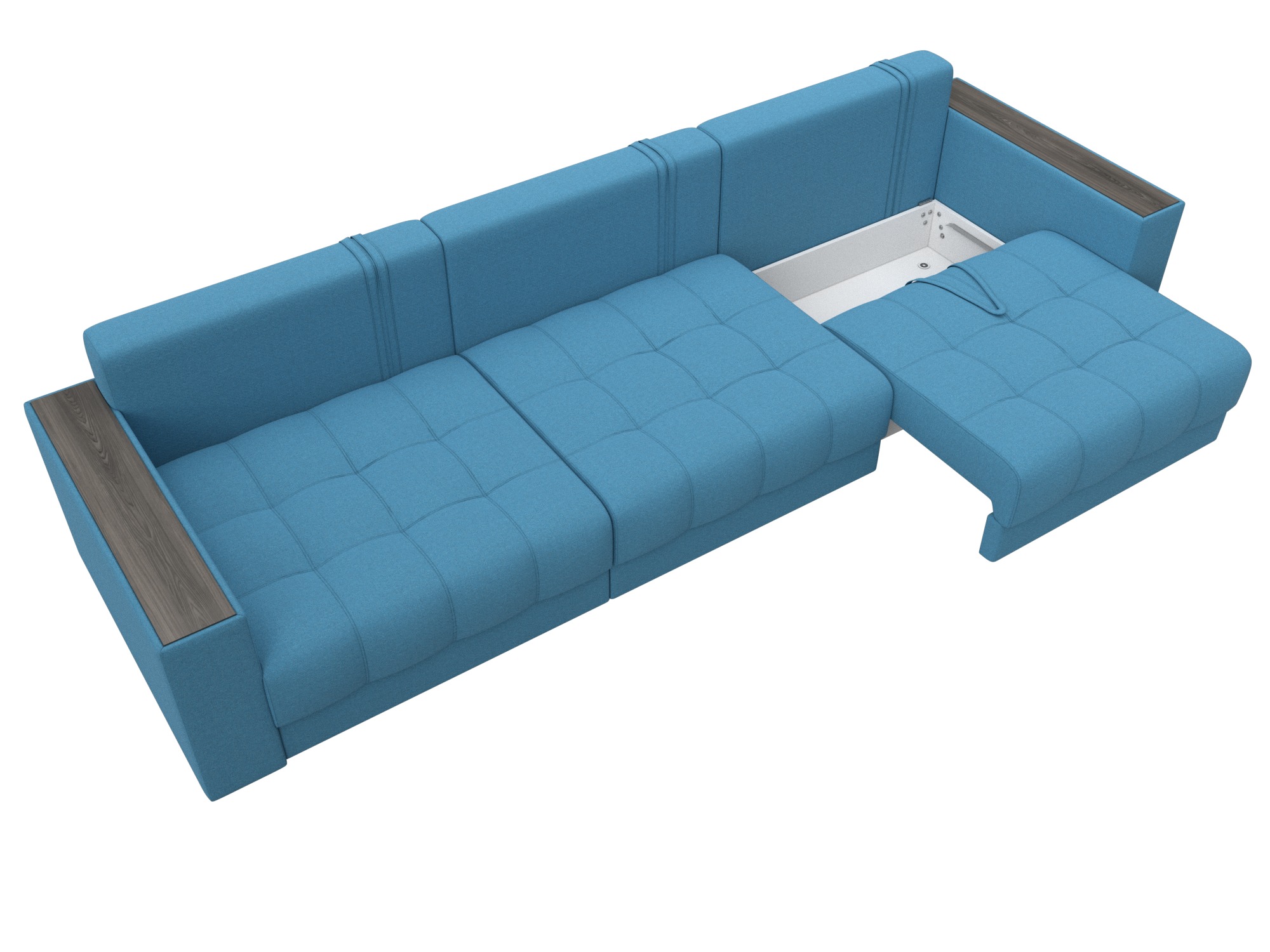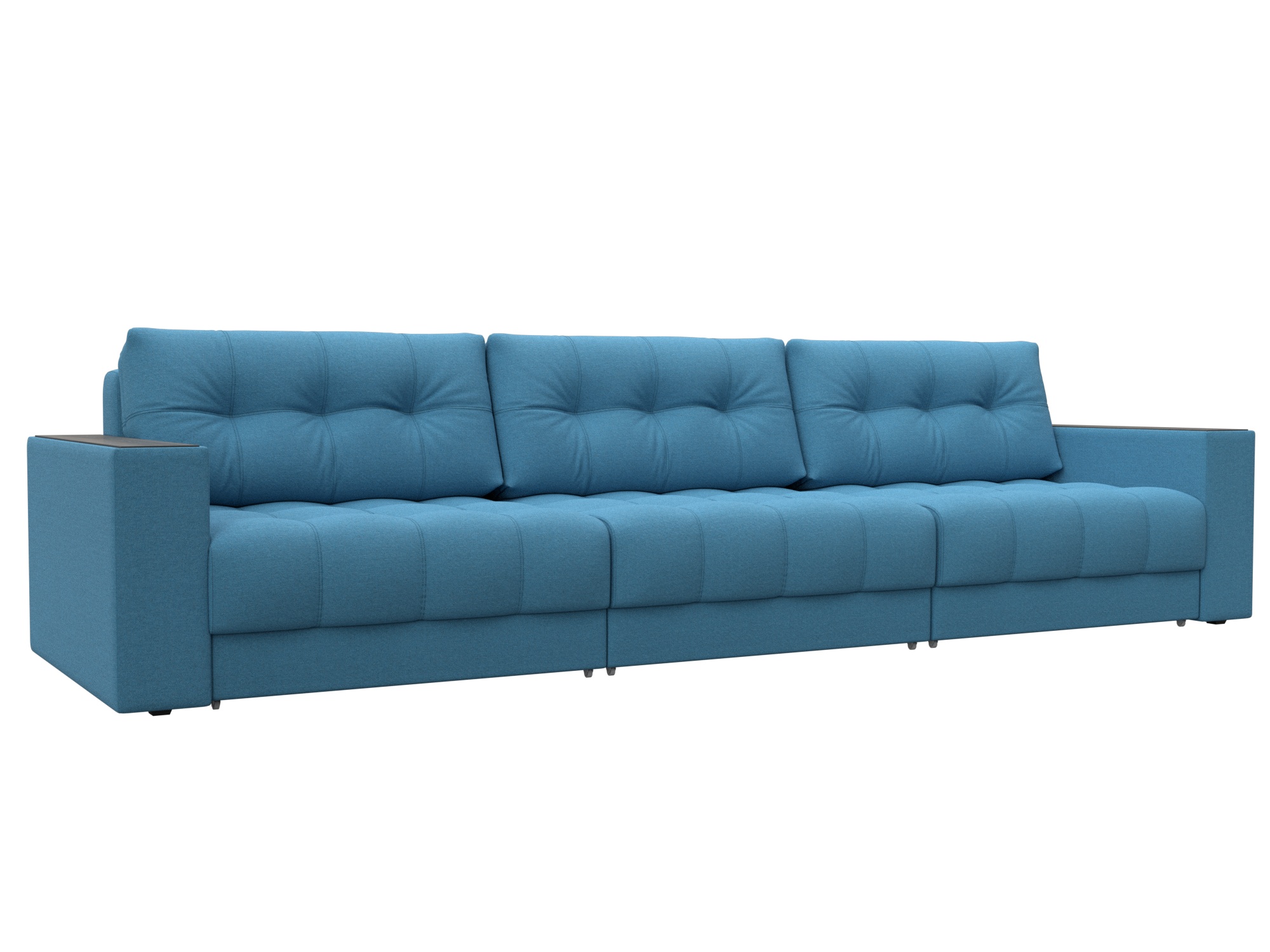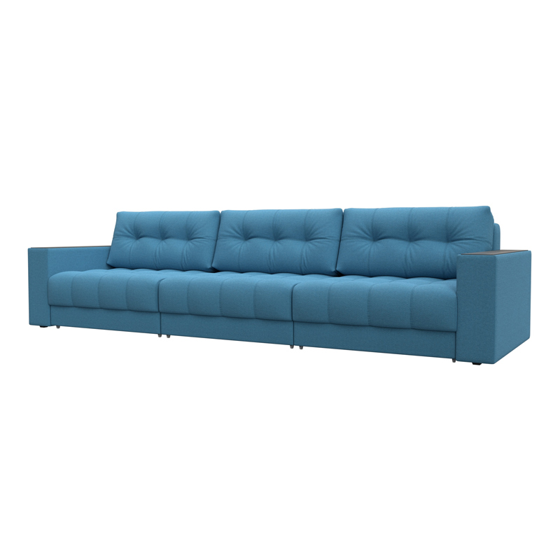 Диван прямой с декором Лига-049 НПБ Лонг, Амур 10 голубой, Рогожка