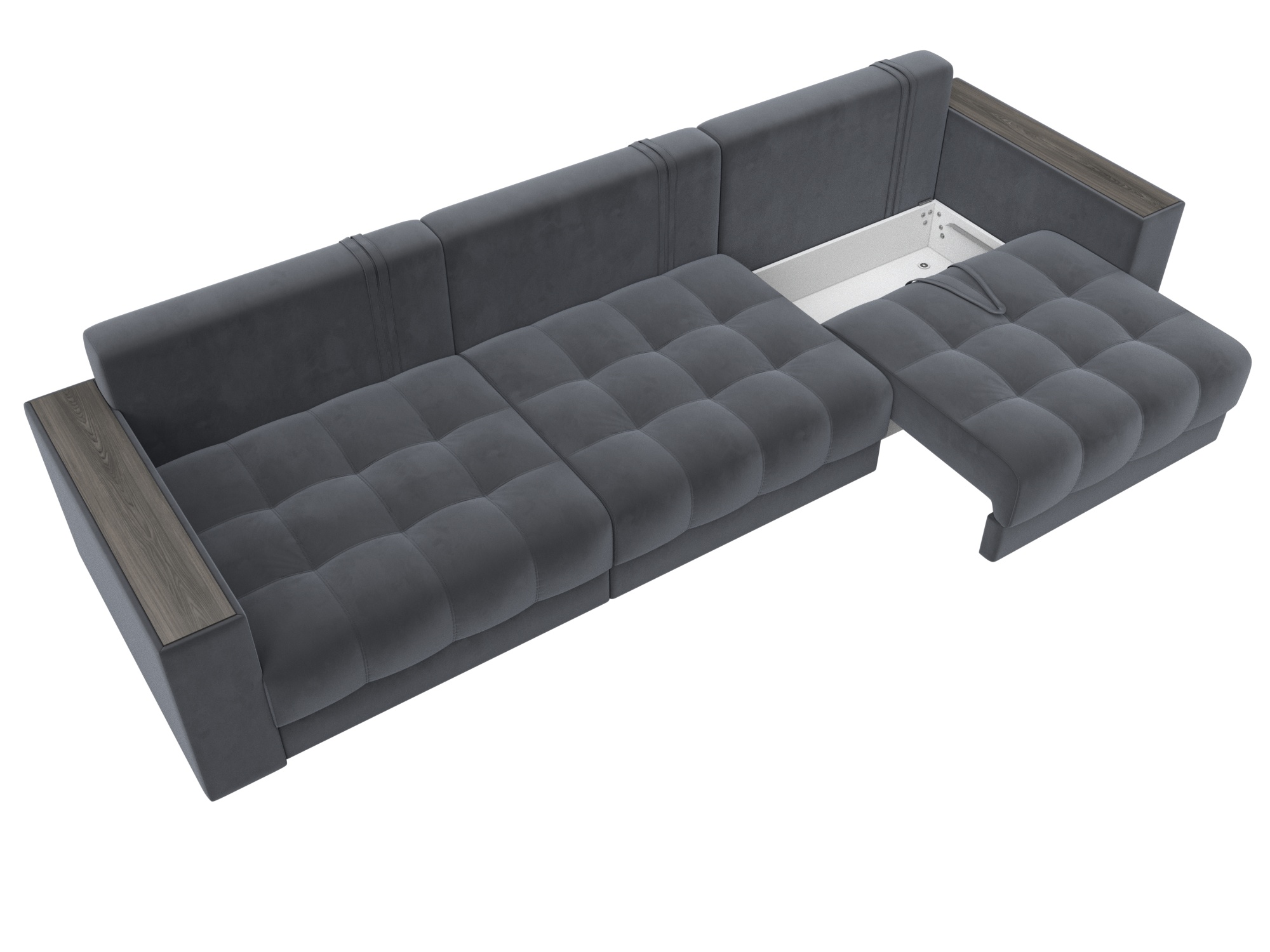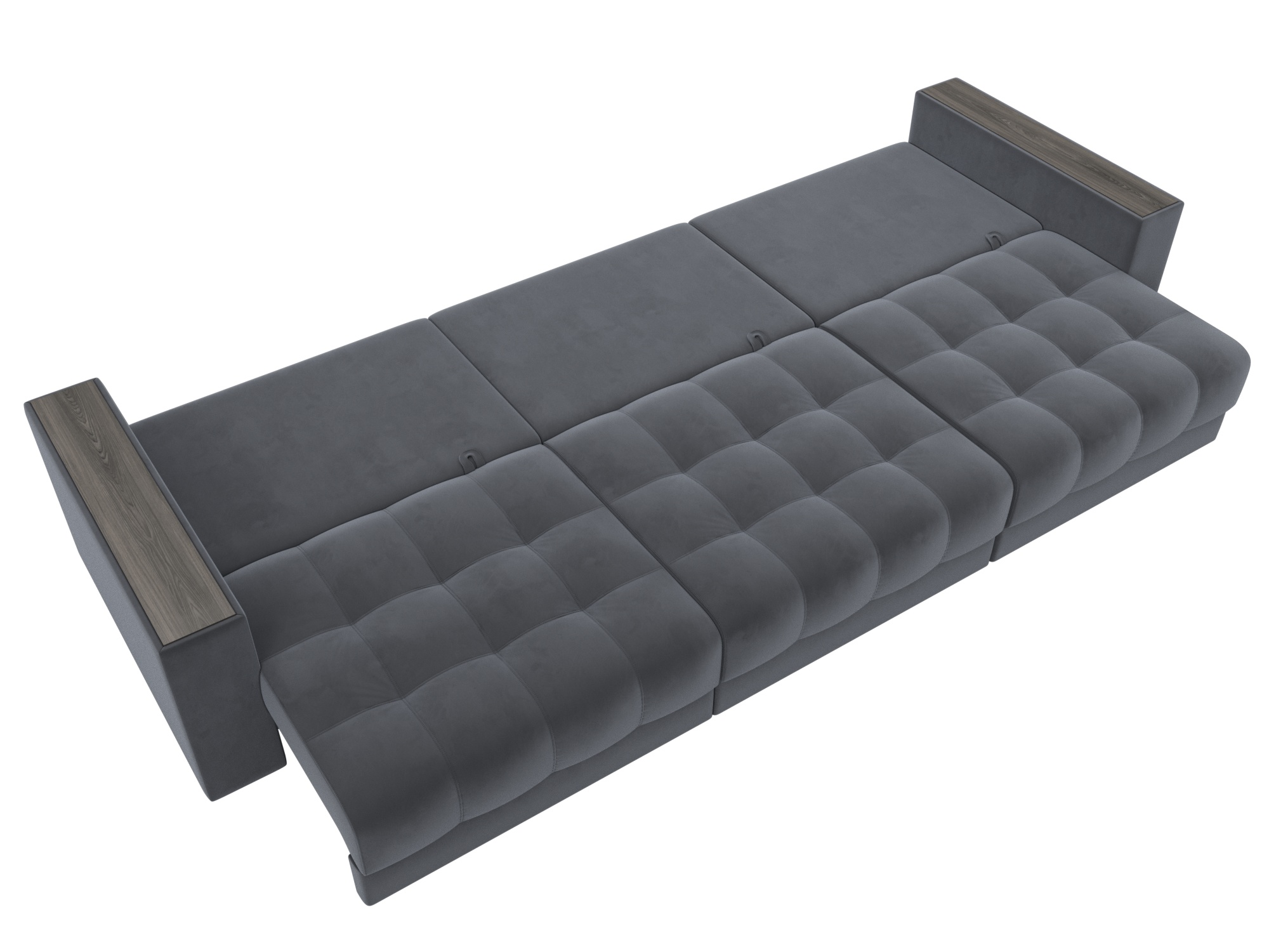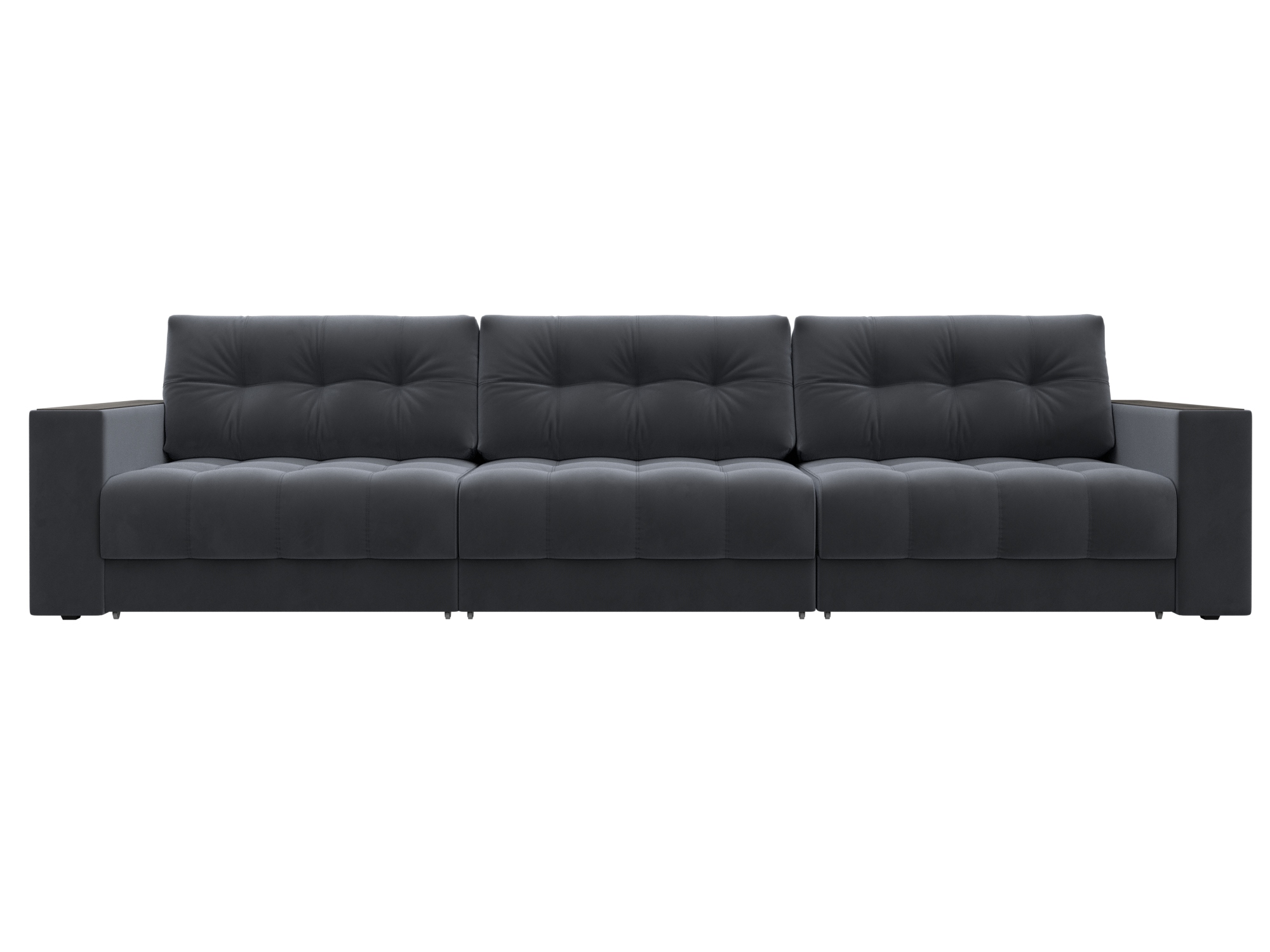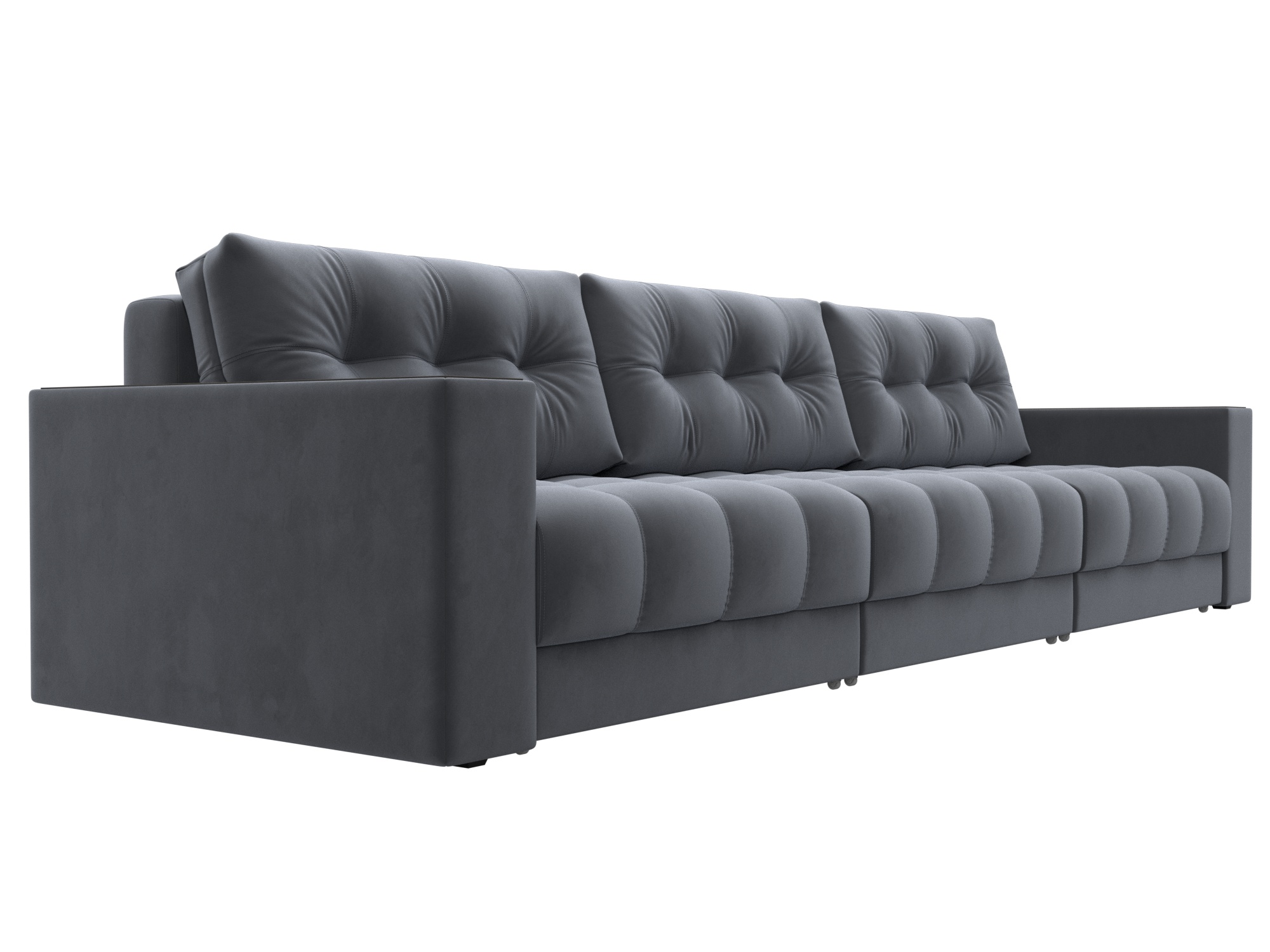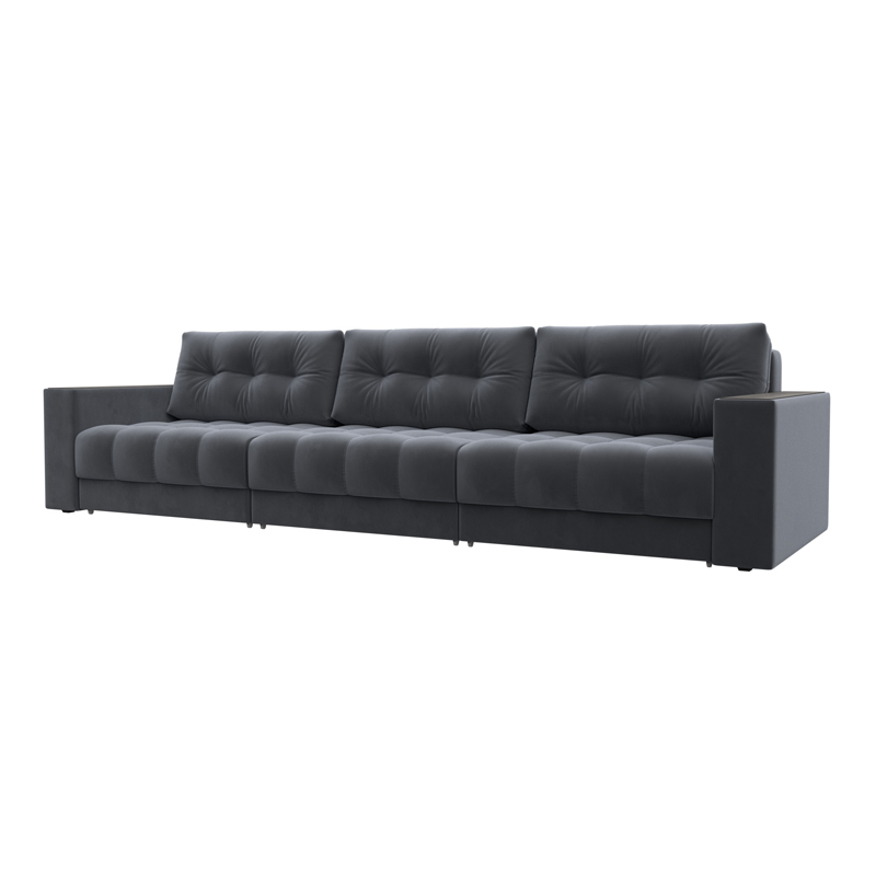 Диван прямой с декором Лига-049 НПБ Лонг, SEVEN 17 серый, Велюр