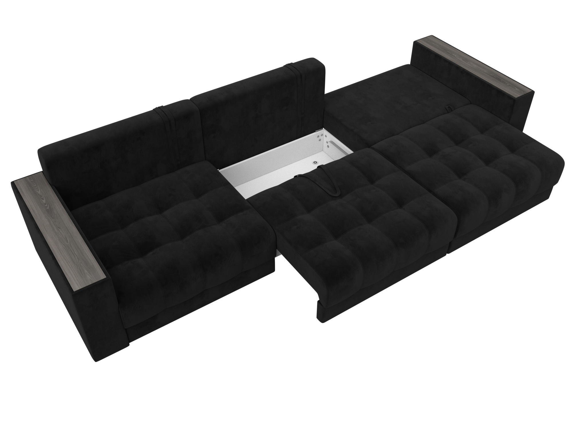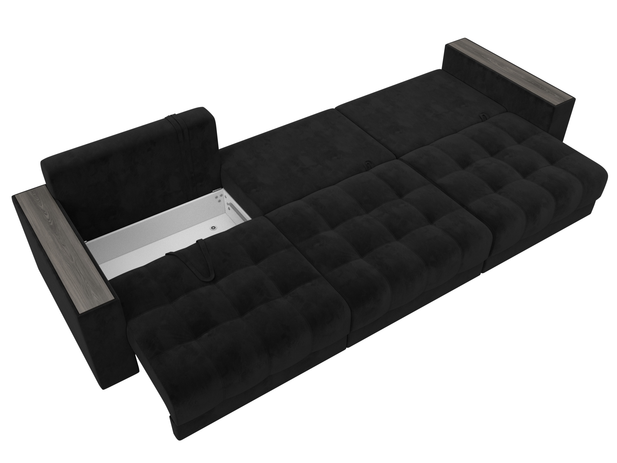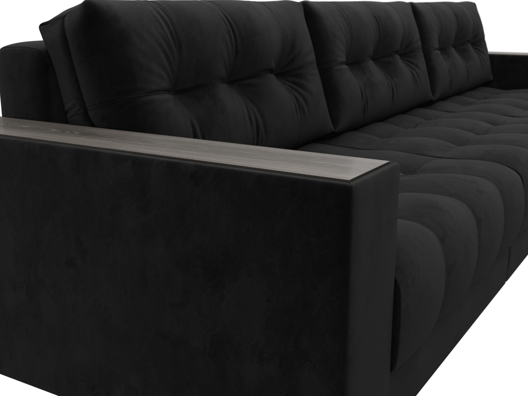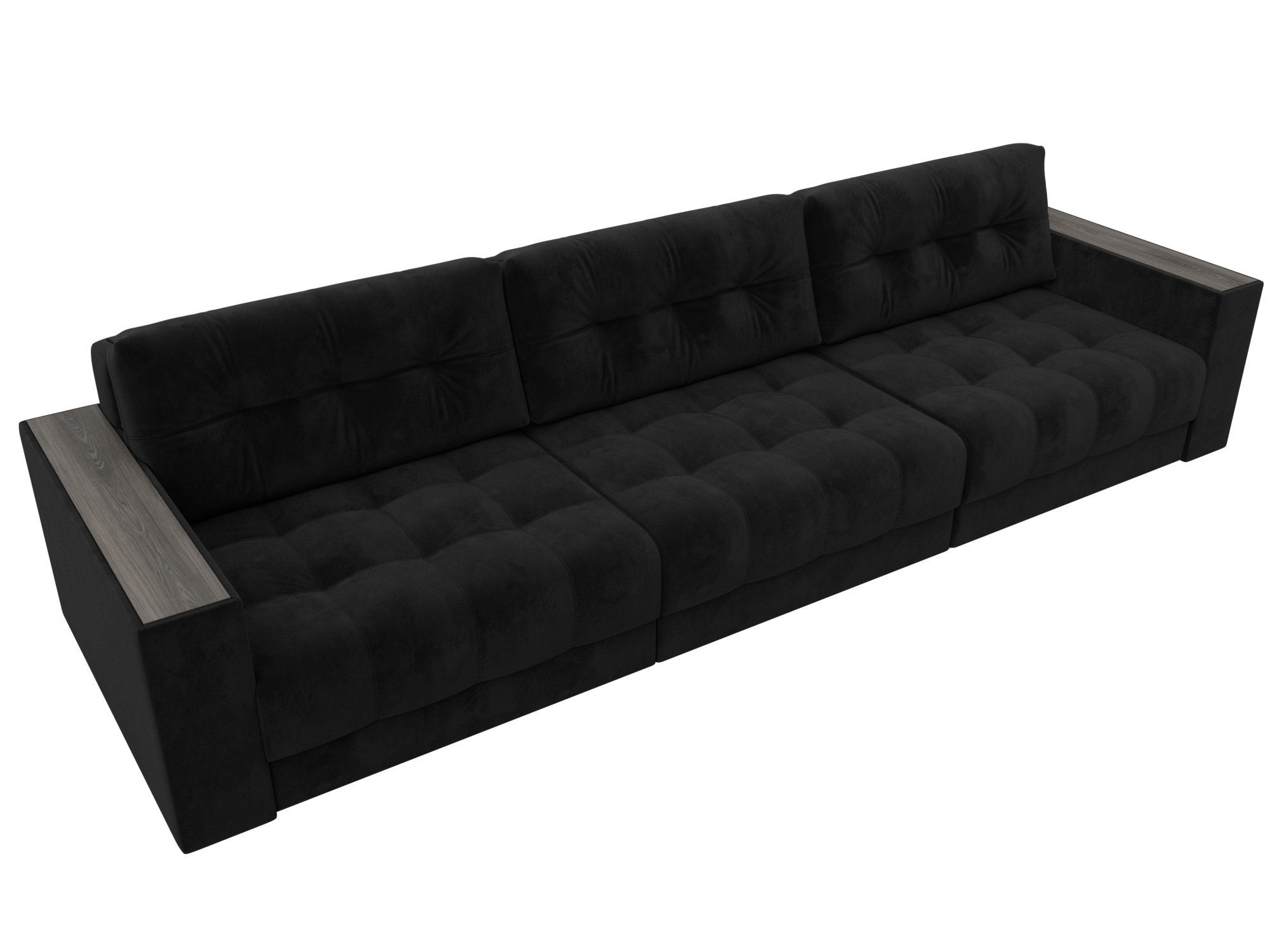 Диван прямой с декором Лига-049 НПБ Лонг, SEVEN 35 черный, Велюр